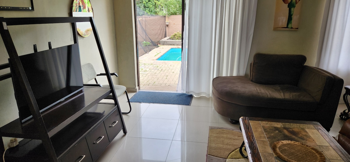 Luksuriøs leilighet med ett soverom i et sikret leilighetskompleks. Åpen planløsning med fullt utstyrt kjøkken. Reserve strømforsyning for TV, trådløs ruter og lys. Reservevannsystem. DSTV-strømming på Smart-TV. Vær oppmerksom på at denne enheten er røykfri. Perfekt for jobb og fritid. Nær Secunda Mall og Sasol hovedport.