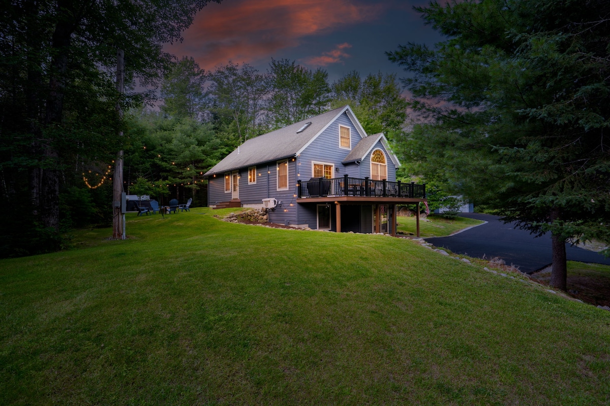Slapp av på dette hundevennlige feriestedet i Bethel, ME, som ligger på fire private hektar. Dette er det ideelle vinterferiestedet. Hjemmet har tre soverom og 2,5 bad, og det er komfortabelt for gruppen din. Nyt et profesjonelt kjøkken med eksklusive apparater, en innendørs badstue, boblebad og shuffleboard. Kos deg ved bålet etter en dag med eventyr! Beliggende bare minutter fra Sunday River for ski og snowboard, pluss snøscooter og langrenn i nærheten, venter den perfekte blandingen av eventyr og avslapning.