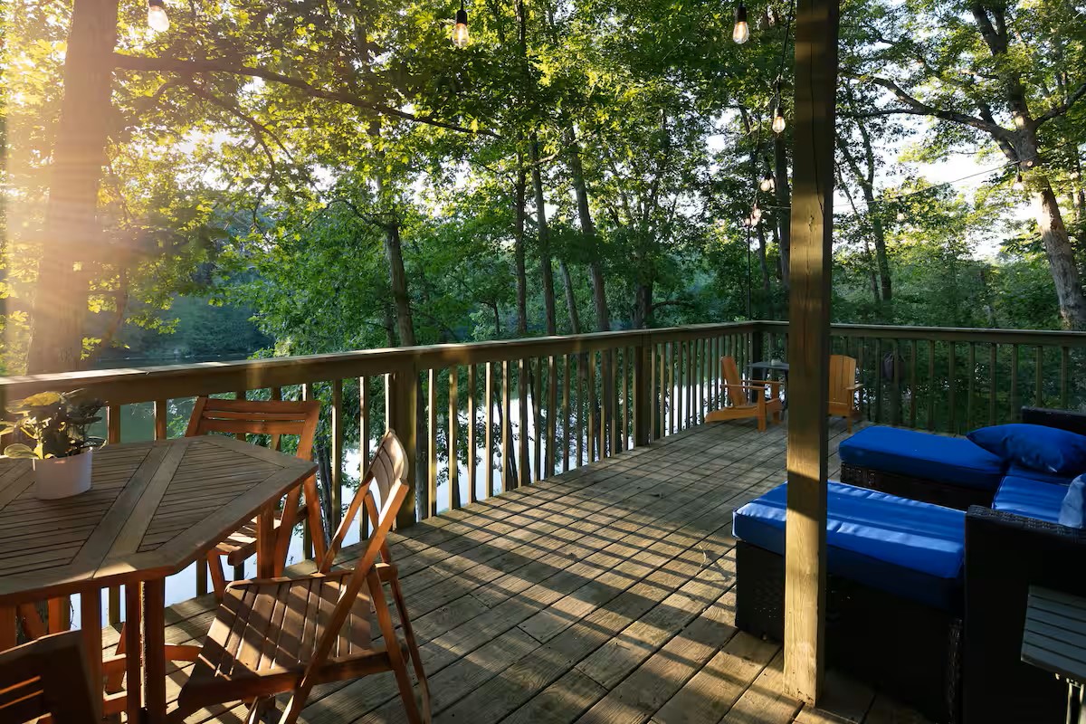 Spa retreat steps from your own lake, set on 10 wooded acres with water views and total calm. Swim in the pool, soak in the hot tub, sweat in the sauna, or cast a line from the shore. End the day at the fire pit, then unwind in the game and movie rooms. Inside are thoughtfully furnished spaces and a well-equipped open kitchen for group meals. A resort-style stay for families and friends who want space, seclusion, and quality. Easy self check-in, ample parking; pets welcome with notice/fee.