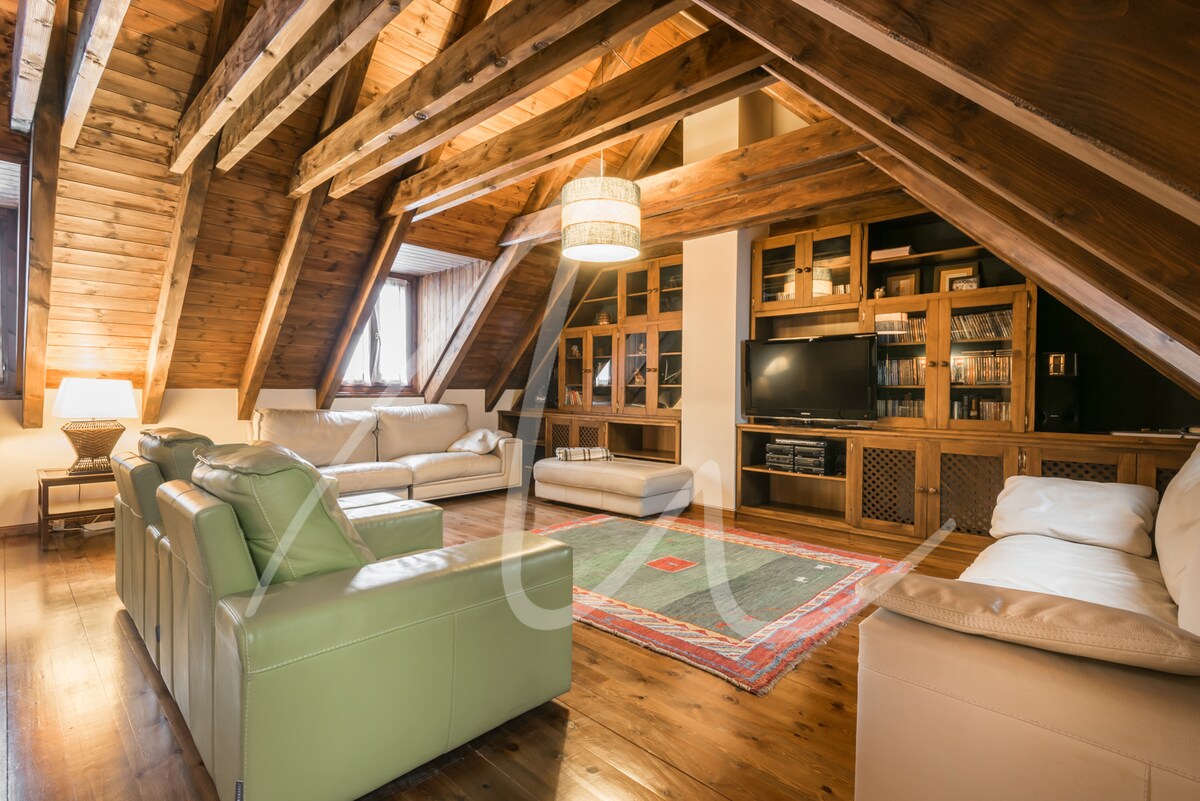 Ven a disfrutar y a relajarte en mi acogedor ático dúplex con vistas a Vielha y a sus espectaculares montañas. Se ubica a 8 minutos de Vielha caminando y 2 minutos en coche, el ático no dispone de parking, aunque en los alrededores es fácil aparcar gratuito. El apartamento es muy luminoso, dispone de dos habitaciones con baño completo cada una, cocina equipada, comedor con sofá-cama y chimenea de leña.Es una zona muy tranquila, ya que la casa solo se compone de dos pisos.Dispone de Wifi.