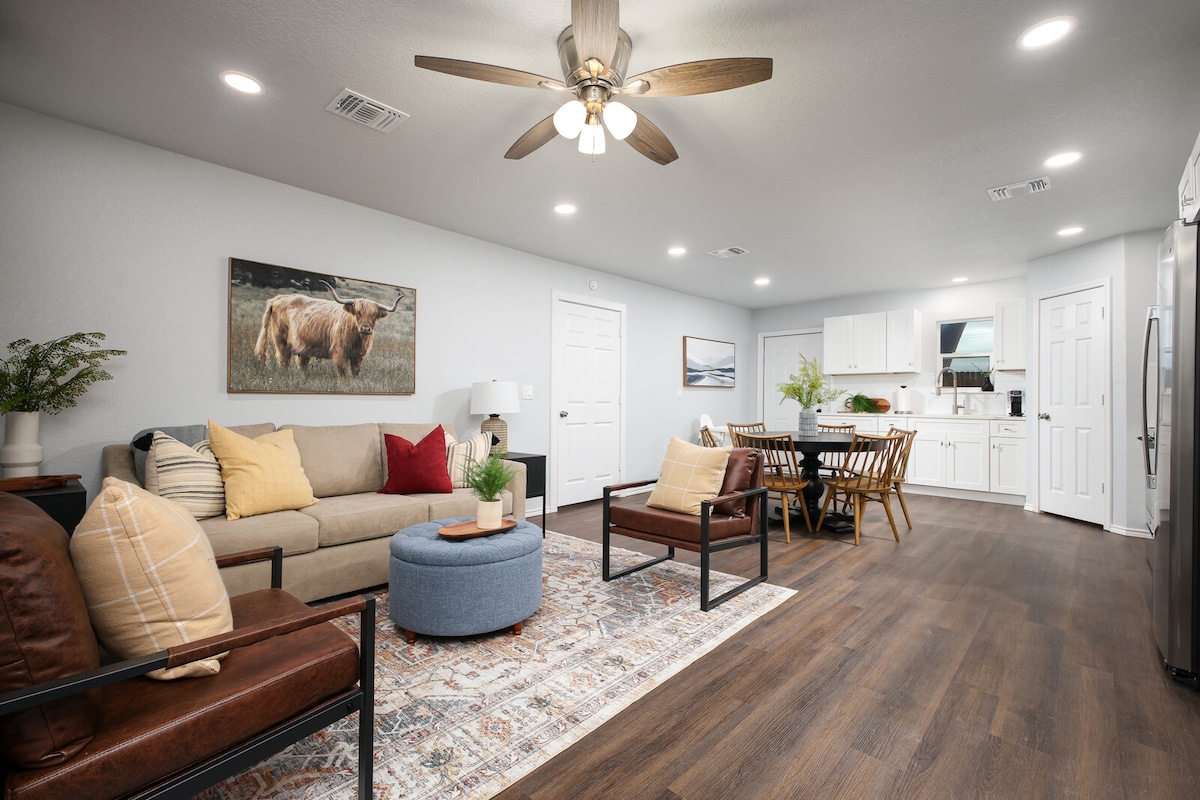 Oppdag Southtown Carriage House, et to-roms/2-bad i andre etasje i San Antonios livlige Southtown! Bare noen skritt fra Riverwalk, Alamo og de beste spisestedene og barene som Rosario's, Friendly Spot og Bliss. Det er «ideelt for to par» og militærfamilier som feirer uteksamineringer. Nyt et "koselig og plettfritt" sted, luksuriøse madrasser, wifi og et velutstyrt kjøkken. "100 % anbefaling!", skryter en gjest. Stille, moderne og gangavstand – din perfekte San Antonio-ferie! Lisens: STR-25-13400957