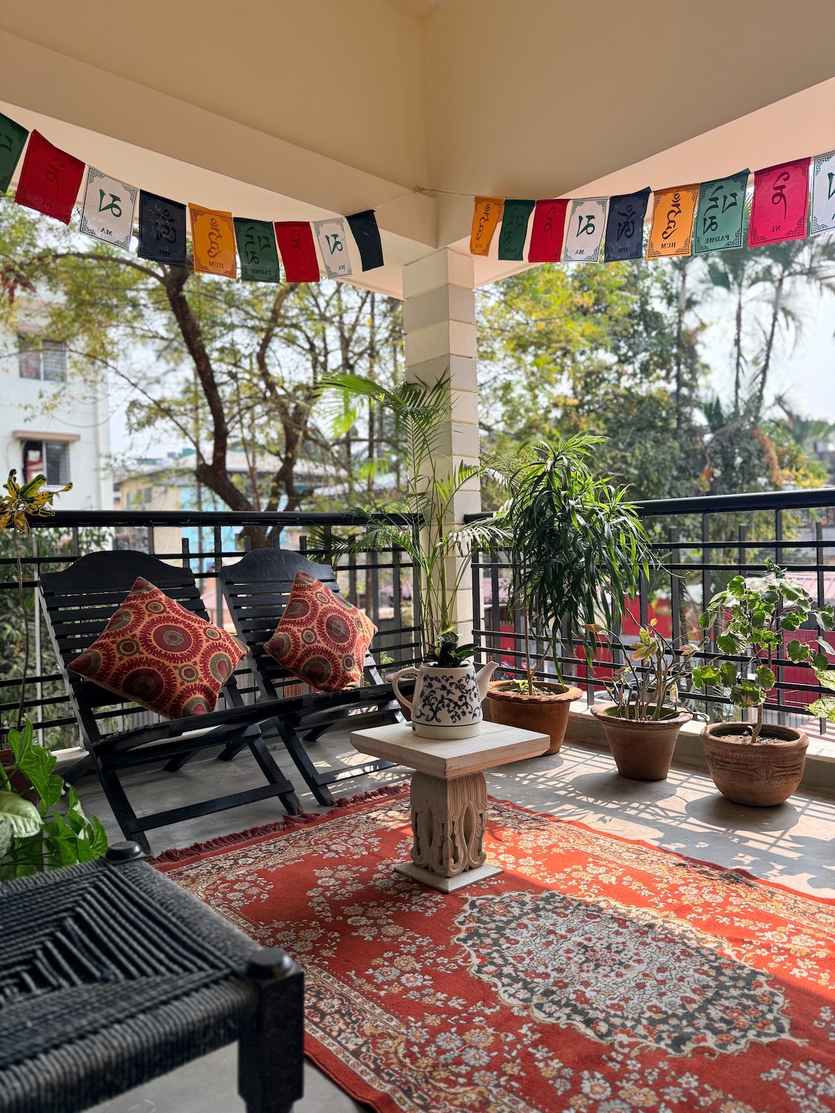 Find your peace at Solace Homestay, a thoughtfully designed stay in the heart of Siliguri. Perfect for hill transit or business trips, it offers a sun-lit bedroom, private city-view balcony, and a chic low-seating lounge. The building has a * lift*, ensuring easy, stair-free access. Less than 1 km from Acropolis Mall, close to Cosmos & Vega Circle, 8 mins to Junction, 15 mins to NJP, 28 mins to the airport, and a 5-minute walk to the local market.