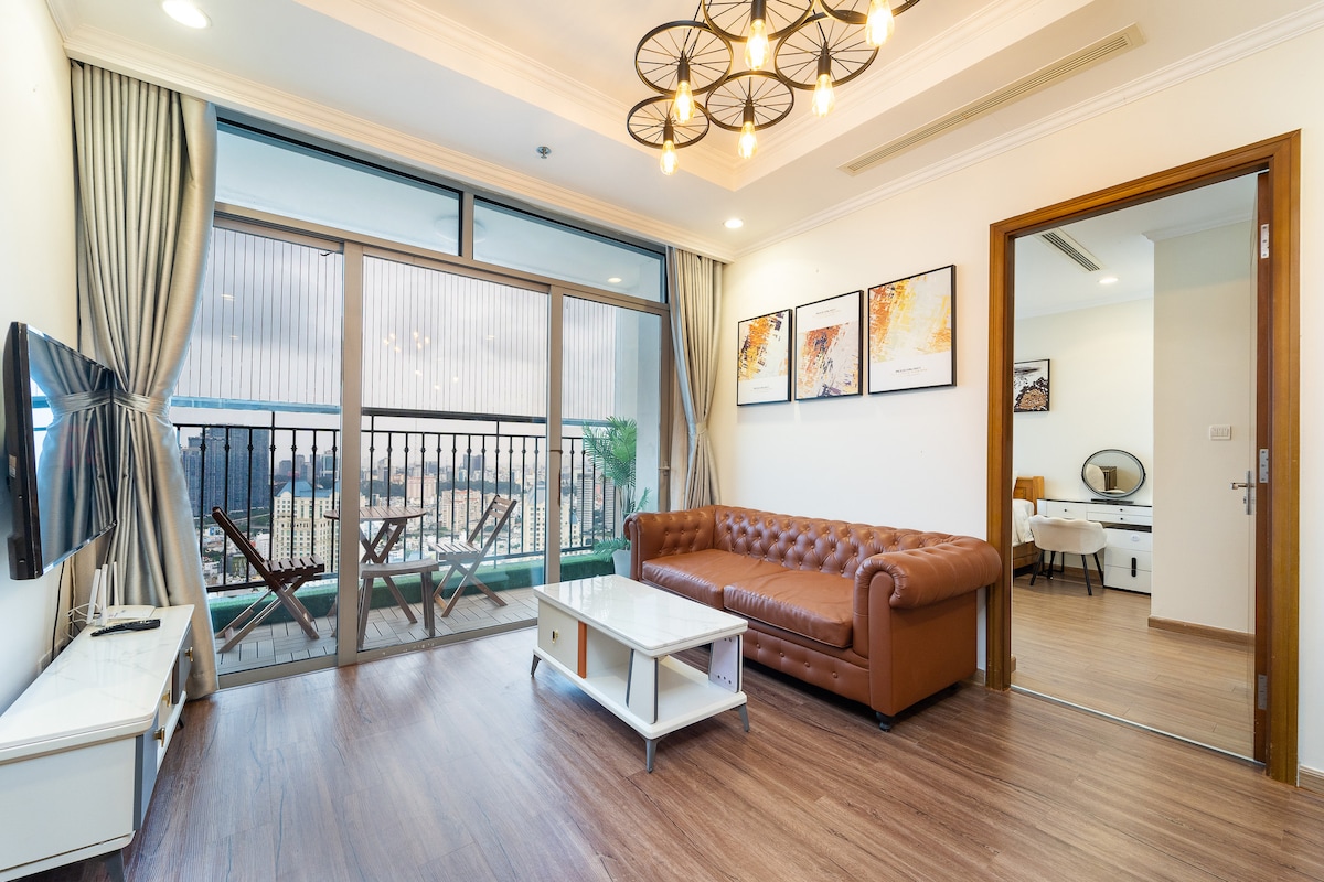 En leilighet i hjørnet av bygningen (8. etasje). Du kan observere den fargerike Landmark 81-bygningen om natten og byutsikten i et annet vindu. La det gi deg flere nye positive opplevelser med gode sanser. – Leiligheten har alt du trenger for et komfortabelt opphold: komfortabel seng, komfyr, vannkoker, kjøleskap, vaskemaskin med tørketrommel, mikrobølgeovn, klimaanlegg, varmt vann, melkebad, sjampo, håndklær, toalettartikler.