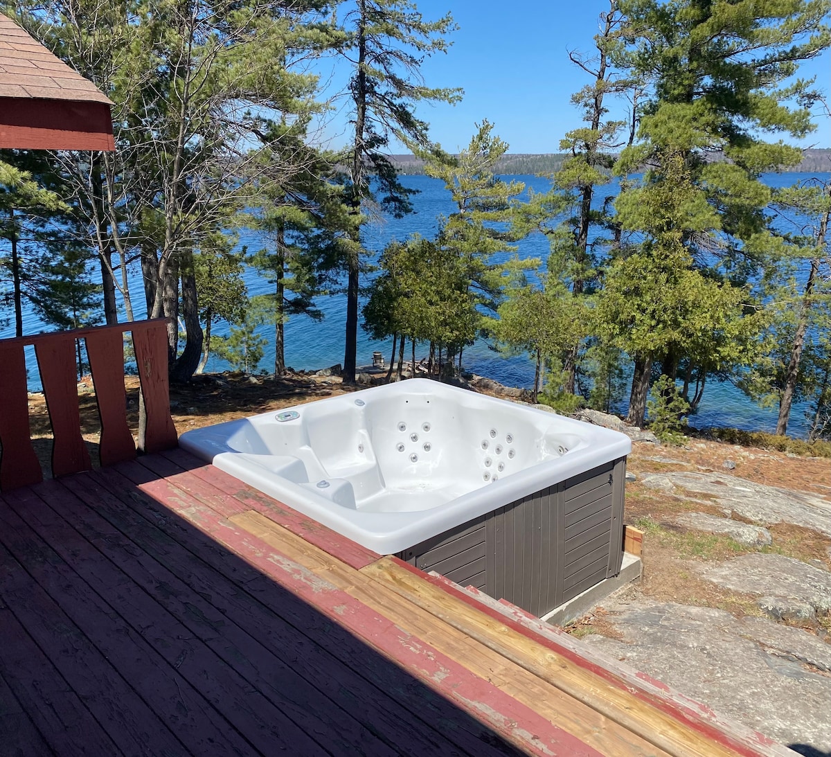 Vår familievennlige hytte ved innsjøen ligger 40 km øst for Sault Ste Marie, det ideelle stedet å komme seg bort og slappe av på. Hytta tilbyr tre soverom og ett bad med åpne oppholdsrom. Nyt fantastisk utsikt over innsjøen og fjellene fra terrassen. Full tilgang til en privat hage ved vannet med et strandområde, bålplass og brygge. Svømming, fisking og kajakkpadling er helt nødvendig. Ta med redningsvester for lek i vannet og marker for fiske. Mange stier for ATV-er utenfor bakdøren.