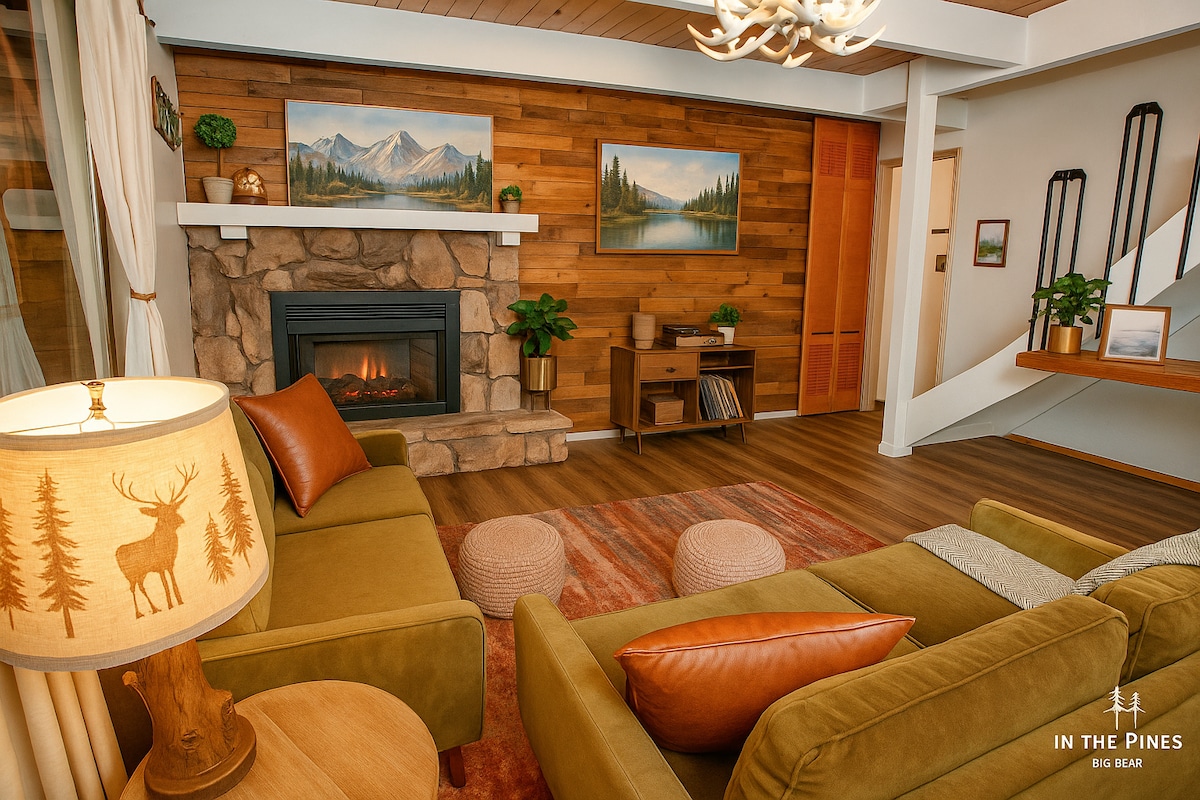 Denne ikoniske fjellhytta ligger mellom Big Bear og Lake Arrowhead og blander rustikk hyttesjarm med moderne bekvemmeligheter. Nyt en fantastisk utsikt over skogen fra to terrasser, slapp av i det private boblebadet eller krøll deg sammen ved den knitrende peisen. Den er fullstendig restaurert og innredet med hensikt, og setter standarden for Arrowbear retreats. Bare ti minutter til SkyPark, 19 til Lake Arrowhead, 25 minutter til Big Bear. Flykt, lad opp og skap minner, den perfekte ferien starter her. Toppranket STR på fjellet