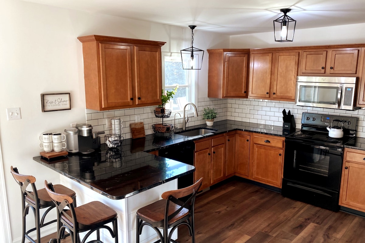 Slapp av på dette fantastiske tilfluktsstedet på en hektar stor bakketopp med utsikt over Antietam Battlefield og frodige vingårder. Hjemmet vårt er perfekt for en romantisk ferie eller en familieferie, og det er nylig oppusset. Det har fantastisk utsikt fra terrassen, koselig interiør og enkel tilgang til Antietam Creek Vineyards – bare en kort spasertur unna. Utforsk stier i nærheten, slapp av ved bålplassen utendørs under stjernene og nyt de fredelige omgivelsene mens du opplever alle hjemmets bekvemmeligheter.