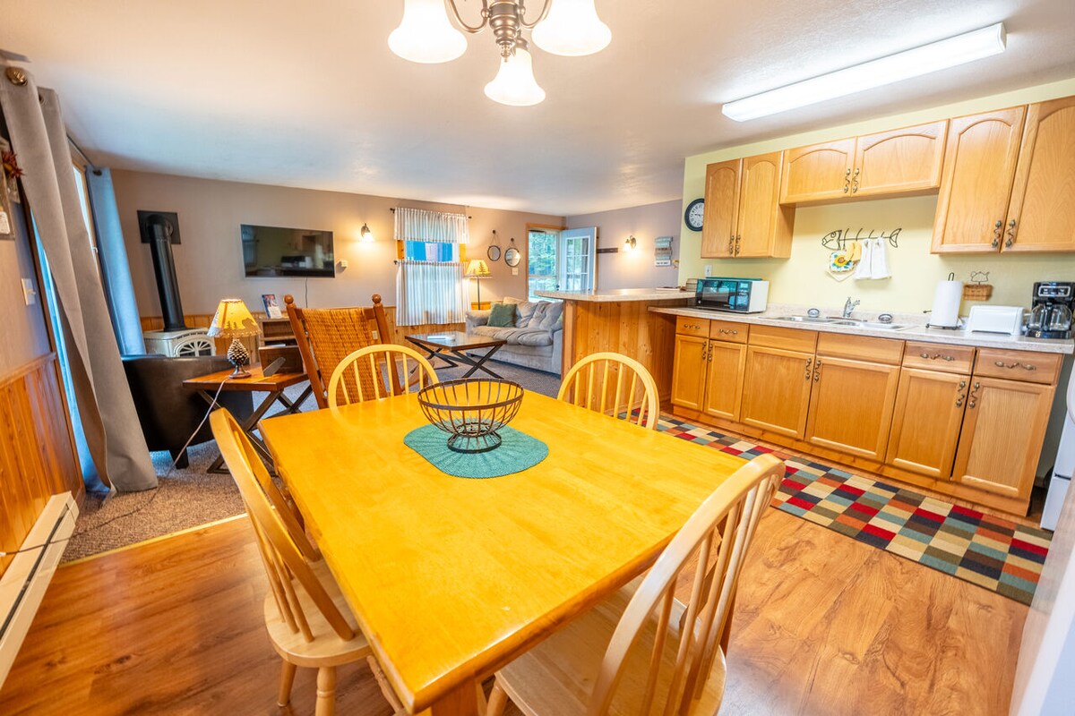 Denne familiestørrelsen, fullstendig lukkede suiten med egen inngang fra vertens tilstøtende hus tilbyr alle hjemmets bekvemmeligheter innen 15 minutter fra Minocqua, Rhinelander og førsteklasses utendørsopplevelser – fotturer, sykling, fiske, båtturer. Inne finner du lyse rom, tømmerbjelker og en hobbiton-følelse, åpen stue med fullt utstyrt kjøkken, bord, køyesenger, stor sofa, TV og trådløst nettverk, soverom med queen-seng og oppbevart luftmadrass, fullt bad, lekerom. Hele suiteområdet er ditt.