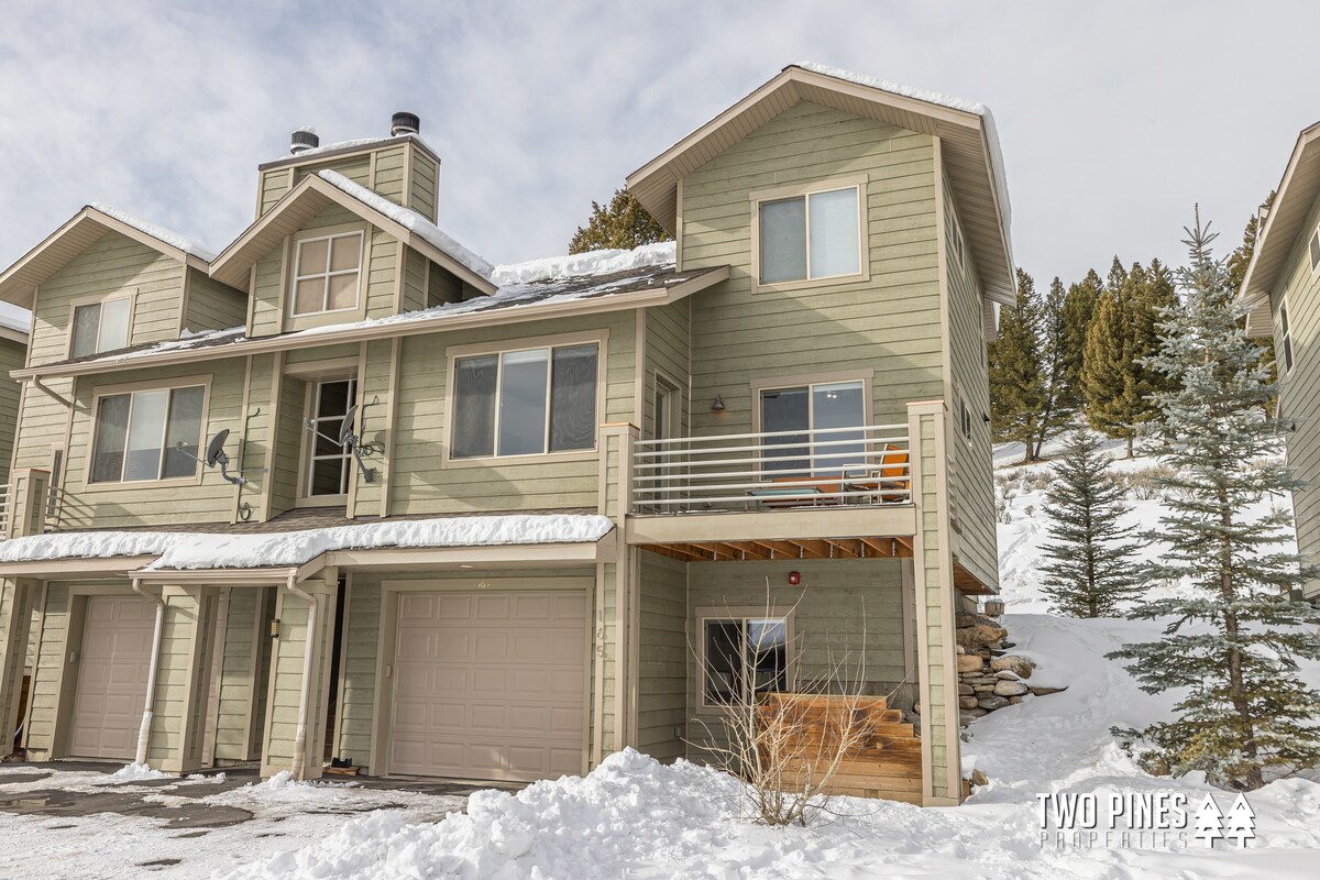 Den perfekte basen for Big Sky-eventyret ditt! Dette rekkehuset med ski inn/ski ut ligger bare noen skritt fra Big Sky Mountain Village – uslåelig tilgang til løypene. Etter en dag med ski, fotturer, fisking, sykling eller rafting, kan du vende tilbake til komfort og avslapning. Hjemmet har tre romslige soverom, hvert med eget bad og fullt utstyrt kjøkken – noe som gjør det enkelt å slappe av og føle seg som hjemme i fjellet. Kom og opplev det beste av Montana – der friluftseventyr møter alpinkomfort.