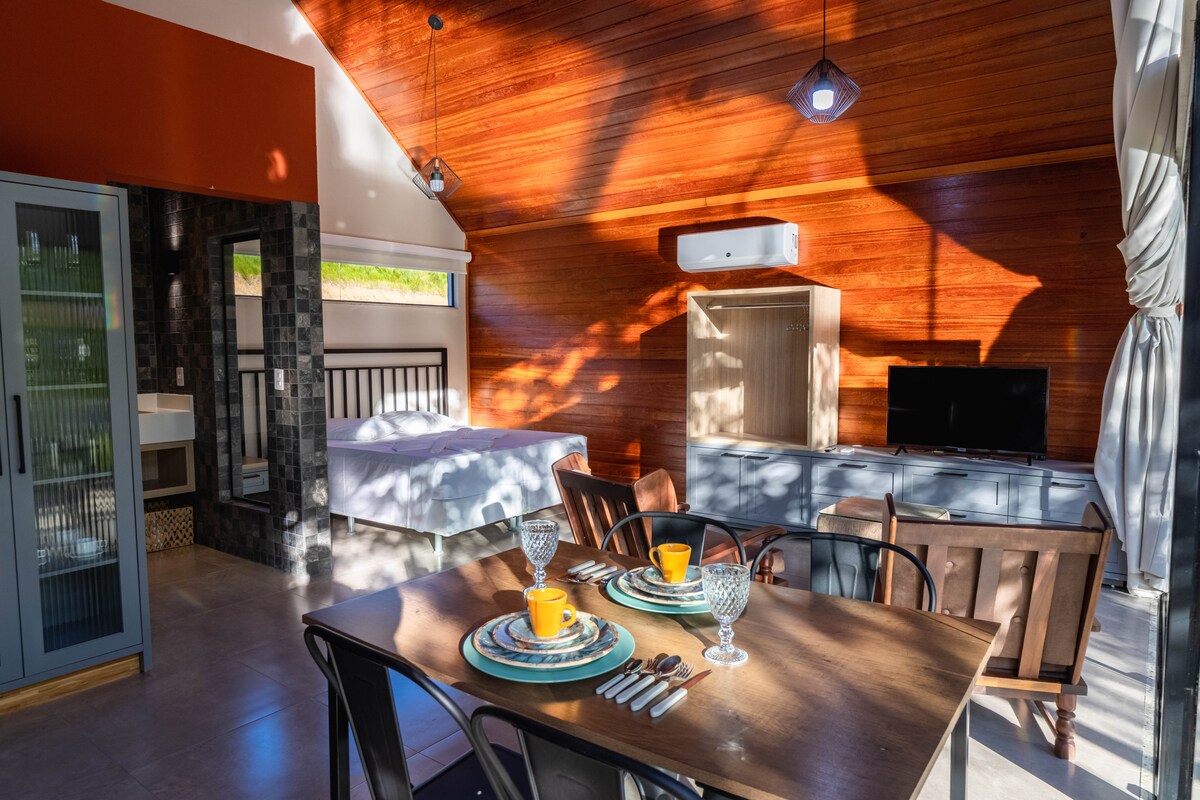 Recanto do Sossego 101 LYSTHUSHYTTA Lev uforglemmelige øyeblikk på dette unike og ideelle stedet å slappe av sammen med familien. Det er ikke bare en hytte, men en unik opplevelse i naturen langs kysten av Santa Catarina. Denne hytta blir med det rustikke til den sofistikerte, og er det ideelle miljøet for overnatting med komfort i naturen. I tillegg til å være koselig, tilbyr det en fantastisk utsikt over fjellet, perfekt for å nyte romantiske dager for dere begge eller som en familie.