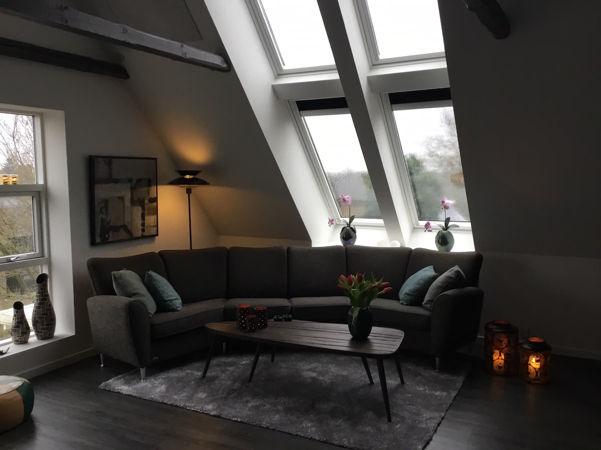 Nydelig loftsleilighet for 4 personer. 1 soverom med dobbeltseng og sovesofa i stuen med mulighet for ekstra seng for 2 personer. Det er innkjøpsmuligheter innen 500 meter; Dagli' brugsen og Konditor Bager. Ladestasjon for elbil ved Dagli' brugsen. Spisemuligheter: Hotel Outrup, Pizzaria og Shell Grillen. Kunstmaleren Otto Frellos hjemby. Nydelig naturområde, 10 km til Henne Strand, Filsø Natur, Blåbjerg plantasje sykkel- og gåstier. Pay and Play golf, Fun Park Outrup og Vesterhavets Barfotspark.
