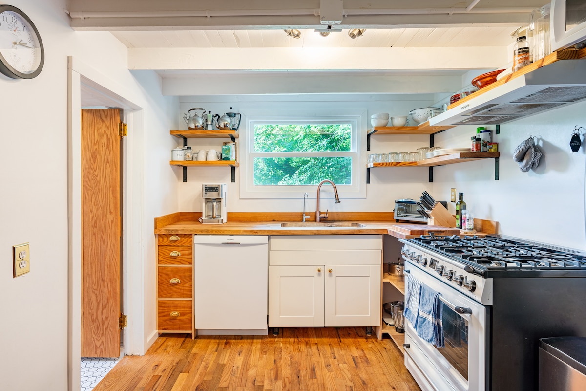 Last Minute Cottage er en koselig, nylig oppdatert FRISTÅENDE studioleilighet i en ombygd garasje fra 1940-tallet! Den ligger praktisk til fire kvartaler fra populære Haywood Road og alle West Asheville-butikkene, restaurantene og barene den har å tilby. Har du lyst til å komme deg ut? French Broad River, Carrier Park og Greenway ligger bare 1/2 mile unna. Enkel tilgang til å flyte eller spasere langs elven! Hytta ligger også praktisk til bare to miles fra sentrum og bare én mile fra River Arts District.