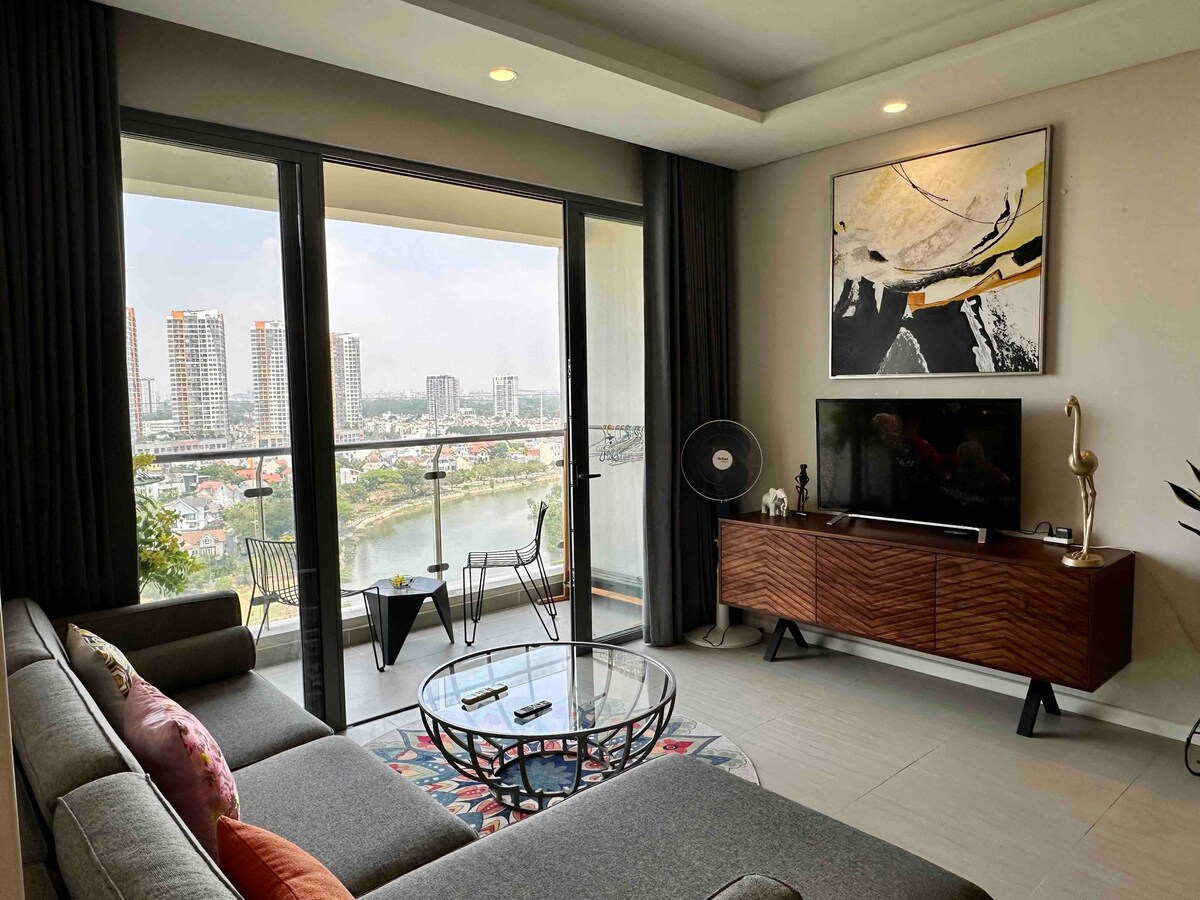 Moderne luksusleilighet, fullt utstyrt møbler av høy kvalitet, på Masteri Block 2 Building 's 15. etasje - et velkjent førsteklasses samfunn for utlendinger i Ho Chi Minh City. Bare minutter unna kjøpesentre, barer, kafeer og restauranter i Thao Dien. Har 2 soverom, 2 toaletter som passer en hel familie, vennegjeng. Gjestene vil nyte gratis trådløst nettverk med høy hastighet, Netflix, svømmebasseng og treningssenter. Langtidsleie og bilutleie tilgjengelig. Sikkerhetspersonell døgnet rundt. Kontakt oss for detaljer.