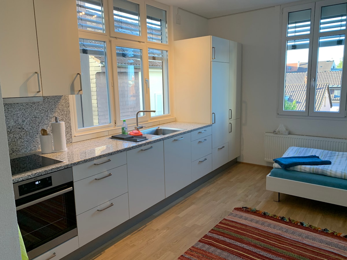 Dette koselige loftet med et lite kjøkken ligger i toppetasjen av et rekkehus på Bruderholz. Den kan låses og tilbyr mye privatliv. Det tilknyttede galleriet kan ikke brukes av sikkerhetsgrunner, men oversvømmer rommet med ytterligere lys gjennom et annet takvindu. De som elsker naturen og samtidig vil ha fred og ro og nærhet til byen, vil nyte den sammen med oss. INKLUDERT: BASELCARD