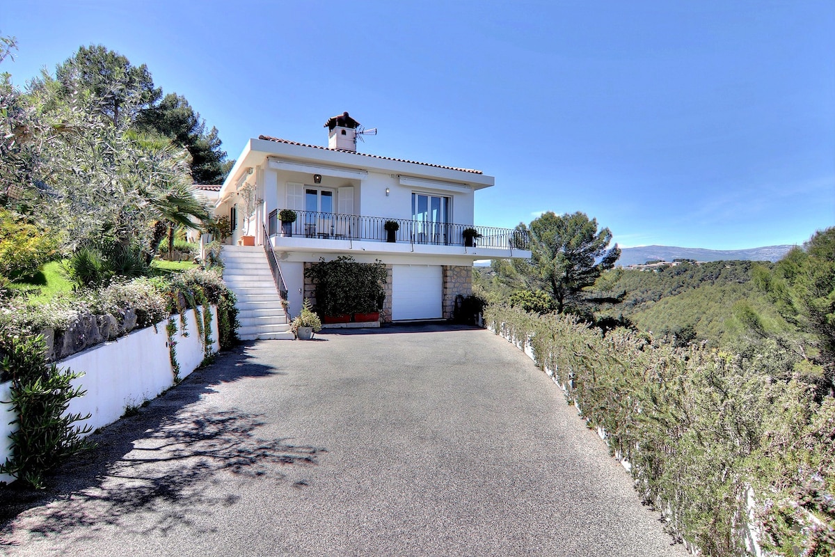 2025 nyheter huset vårt er offisielt registrert som et 4-stjerners hus. Slapp av i denne unike og rolige boligen med panoramautsikt over havet og fjellet. Denne villaen ligger på høydene i Antibes i et rolig boligområde og er omgitt av en tomt på 5800 m2. Alle butikkene ligger tre minutter unna med bil, og sentrum og strendene ligger syv minutter unna.