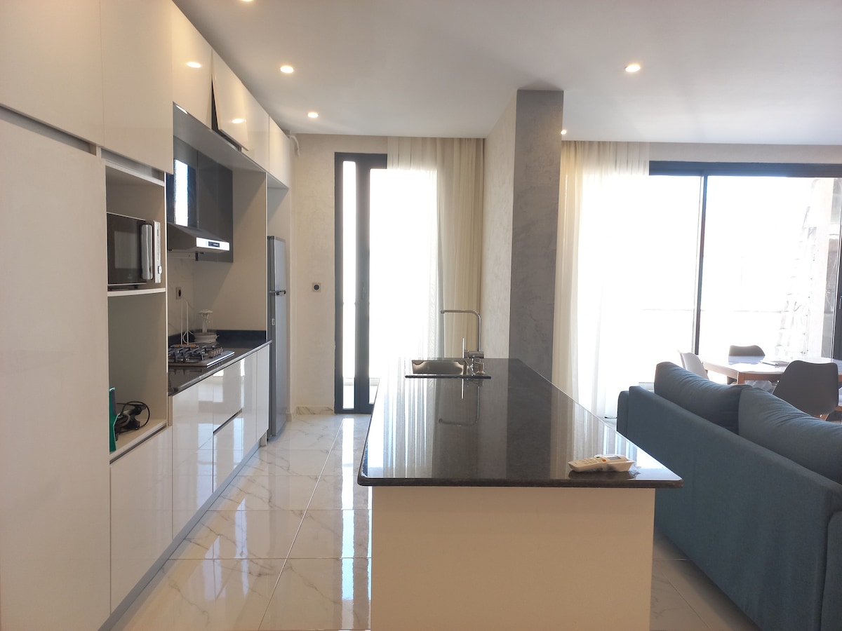 Leilighet F3 i 3. etasje i Akid Lotfi, Oran. Ideell beliggenhet: 5 minutters gange fra den lokale moskeen. Døgnåpen matbutikk ved foten av bygningen, restauranter i nærheten og treningssenter tre minutter unna. I nærheten av Hotel Méridien. Moderne fasiliteter: utstyrt kjøkken, klimaanlegg, 2 soverom, stue, privat terrasse, separat toalett og bad. Bare 20 minutter fra flyplassen og 12 minutter fra sentrum med bil. Moderne komfort i et livlig og praktisk nabolag