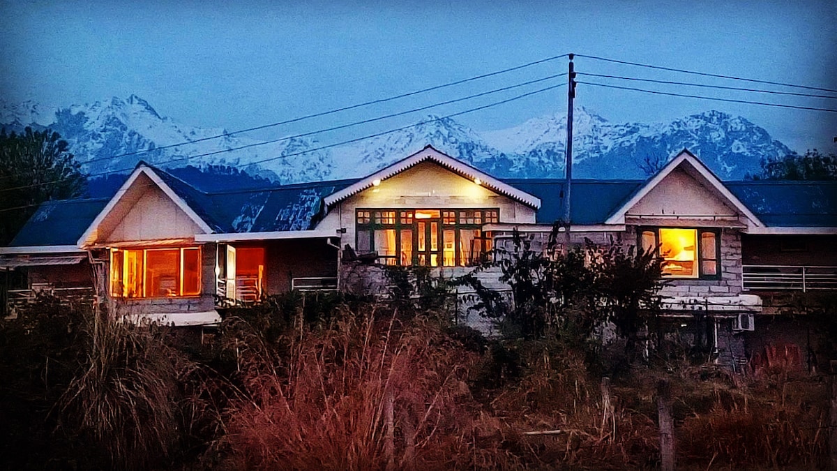 A modern 2 storey villa nestled in nature, with 360 views of Dhauladhar mountains. Windows and balconies offer breathtaking sunset and sunrise views with paragliders in the sky. A fully functional open kitchen. The living room is spacious with a lush green private garden. There are 3- large bedrooms and a hang out space. The living room and lounge are designed for conversations and community. Villa is pet friendly. 12mins walk to landing site 5-10mins walk to cafes 10mins walk to main market