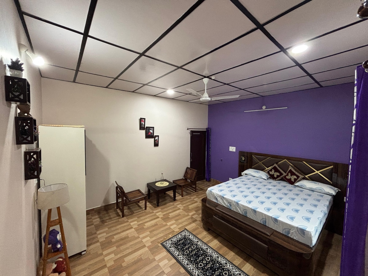 Perfect long term gateway or WFH station for family & group of friends A serene stay overlooking the rice farms with stunning mountain views, conveniently located away from the tourist hustle & yet close to the flying city Bir(2Km). The bathroom(not attached) is a mix of village style feel with modern amenities, has a shower, geyser & western style seat in a separate cubicle. Kitchen is fully functional with fresh supply of vegetables from garden along with basic ingredients supply.
