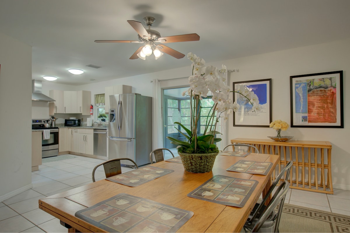 Hjertet av Southside Village, ti minutter fra den beste stranden i USA, Siesta Key. Fem minutter med bil til Sarasota sentrum, ti minutter til St. Armand Circle, Lido og Longboat Key. Nyt dette fredelige stedet innenfor gangavstand til shopping, restauranter og dagligvarer. Sjarmerende privat gjestehus tilbyr en queensize-seng, sitteplasser, bord, kommode, stort eget bad med dusj og privat utendørs solfylt plass og terrasse. Bruk grillen til å lage ditt neste måltid. Det er den perfekte ferien for par!