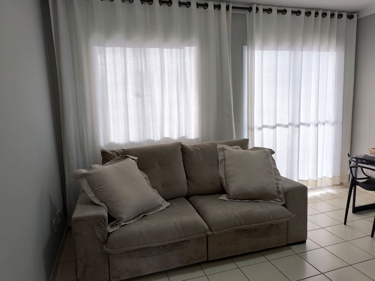 Slapp av på dette stilige stedet. Nyt et bad med plass og hydromassasje. Å sove i et koselig rom, med et bord å sminke seg på eller til og med jobbe på, med et vindu som lar deg se planter og lytte til fuglene. Se opp for araene som passerer om morgenen og på slutten av dagen. Stuen har plass til to barn til på sovesofaen eller en voksen. På kjøkkenet er alt du trenger for et komfortabelt opphold. Boligområde, men i nærheten av barer og restauranter. Dyrevennlig