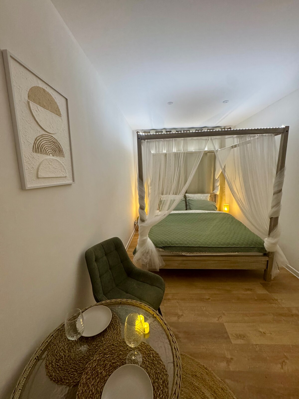 Hold det enkelt på dette fredelige stedet, en 5-minutters spasertur til sentrum og de praktfulle vollene. Leiligheten er lys hele dagen og har et fullt utstyrt kjøkken som er åpent mot en spiseplass og en stor stue med sovesofa + oppblåsbar madrass hvis det er seks personer. Ett bad med dusj og vaskemaskin, ett separat toalett og ett soverom. Den ekstra bonusen er en nydelig balkong. Et låst rom: sykler osv. En funksjonell og hyggelig kokong å bo i.