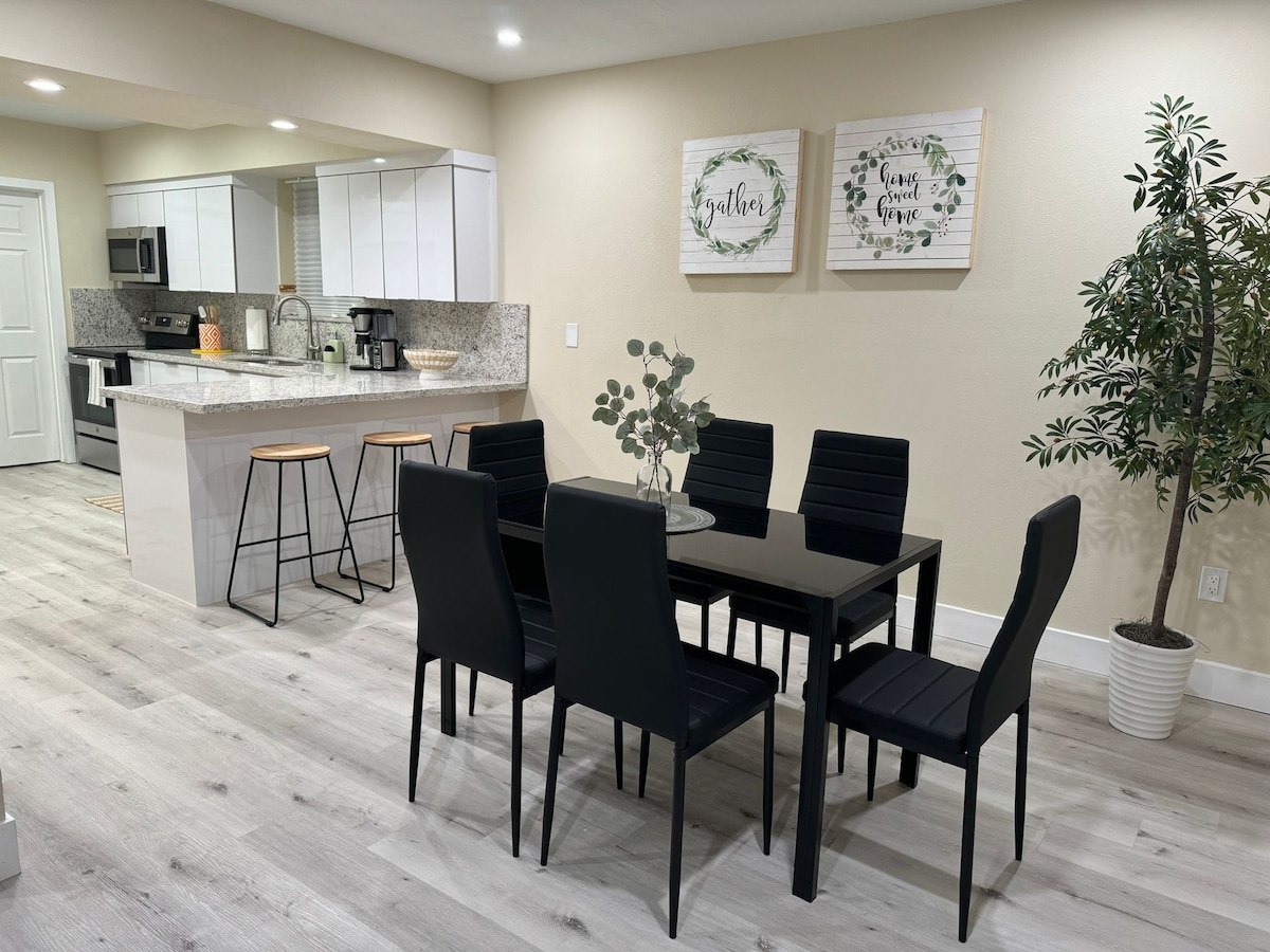 Dette er et nyrenovert moderne feriested fra midten av århundret i hjertet av Pembroke Pines. Denne komfortable studioleiligheten er ideell for kortvarige opphold, med et komplett kjøkken, et vakkert oppdatert bad og en romslig stue. Slapp av i en komfortabel queen size-seng og en futon som åpner opp til en dobbeltseng. Inkluderer gratis kaffe, toalettartikler, raskt trådløst nettverk og en smart-TV med strømmeapper. Fordyp deg i komfort og stil på dette innbydende stedet i livlige Pembroke Pines.