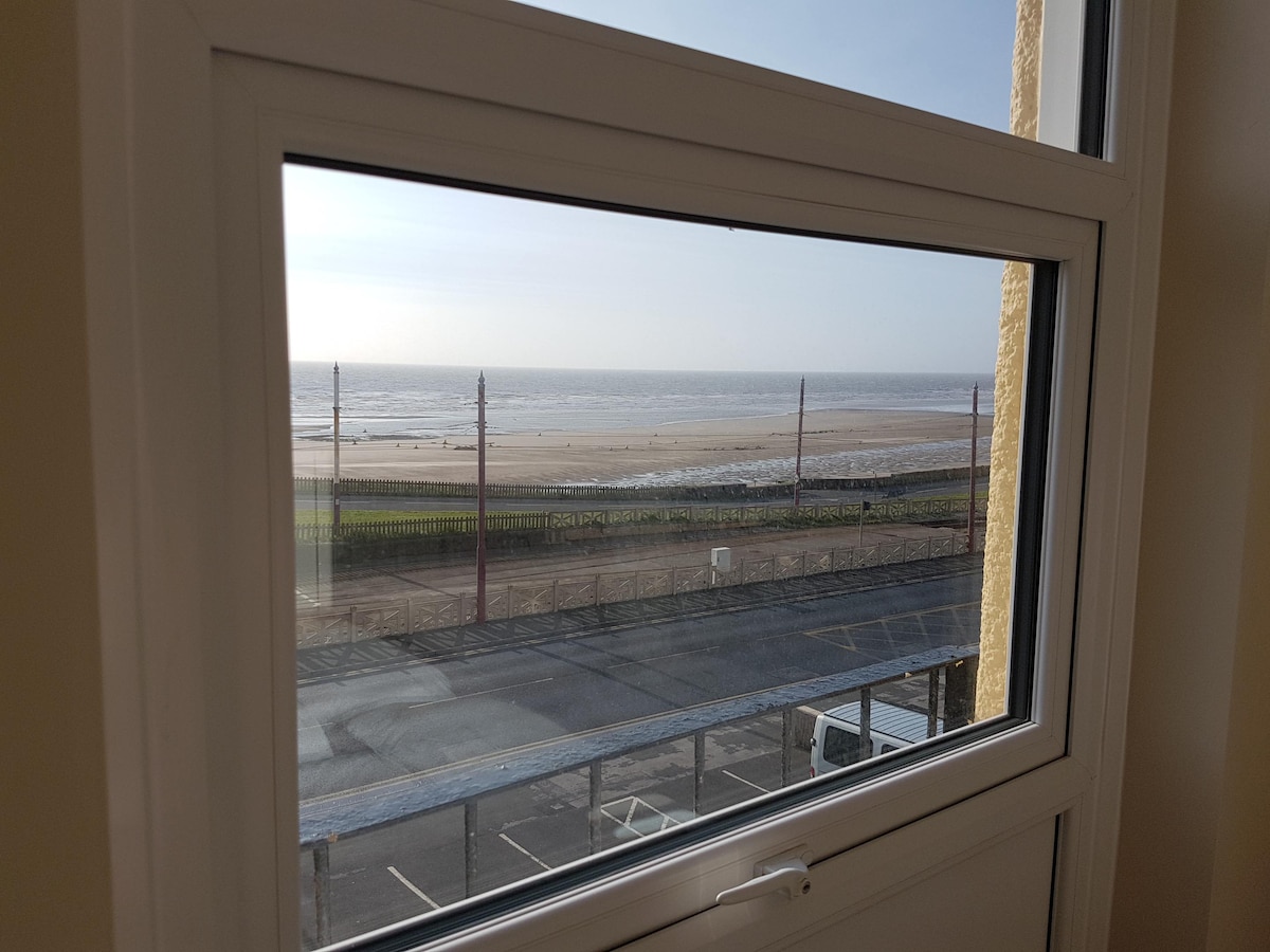 Denne leiligheten er plassert på promenaden. Den har en vakker havutsikt, og du kan også se fjellene i innsjødistriktet . Det er kun 120 meter til trikkestasjonen i Bispham, Blackpool. Rundt hjørnet er det Red Bank Road med alle sine fine restauranter og butikker. Området er rent og trygt. Trapp til leilighet - 31 trinn