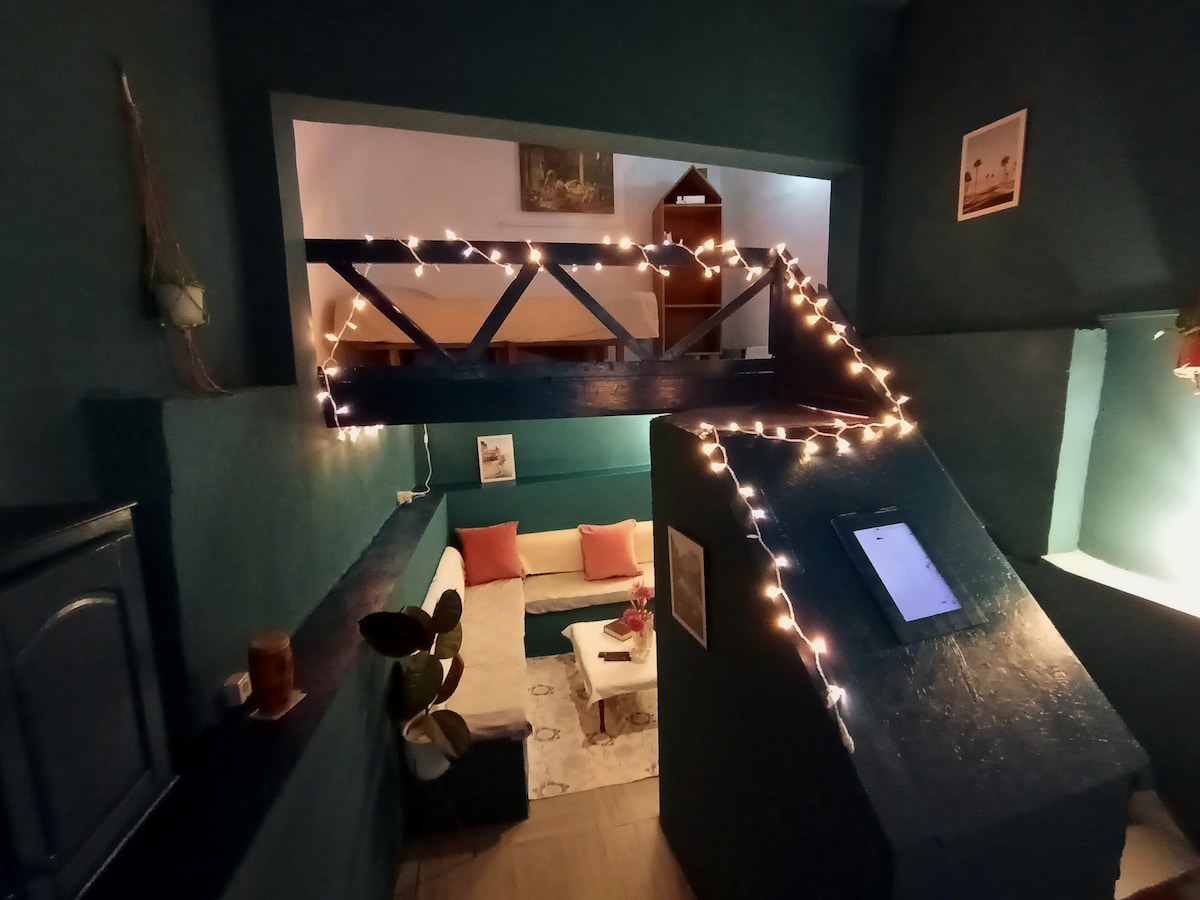 Sjarmerende minileilighet med mesanin – hjertet av Bizerte Oppdag denne nydelige minileiligheten, fullt utstyrt med aircondition, smakfullt innredet i en varm og moderne stil. Ideelt plassert i sentrum av Bizerte, i nærheten av butikker, kaféer, restauranter og den gamle havnen. Perfekt for et opphold alene eller som par, enten det er for et par dager eller for en lengre periode. Sjarmen i sentrum av Bizerte rett utenfor døren!