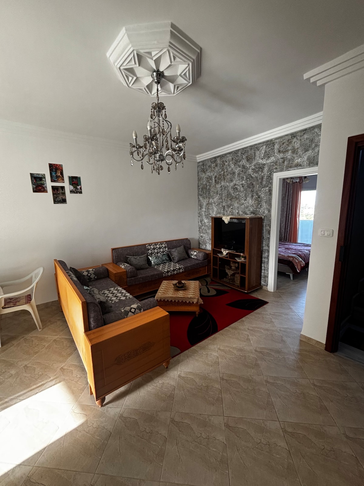 Møblert leilighet for ferier på Corniche de Bizerte, med to soverom og en hyggelig terrasse. Ligger ved boligen Les Dauphins Bleus, to minutters gange til Essaâda-stranden, tre minutters kjøretur til Bizerte-grottene og fem minutter til sentrum og den gamle havnen. Nær alle fasiliteter, velutstyrt, moderne og komfortabelt. I første etasje, over Ooredoo Corniche boutique. Ren og trygg bolig for et fredelig opphold.