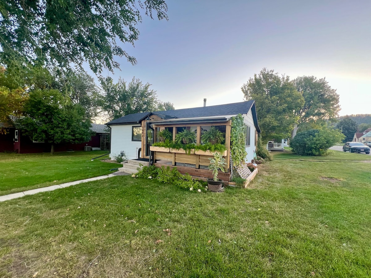 Denne vakre 3 hektar store eiendommen, en gang Swisher Farm, er i dag en fungerende gård, med dusinvis av kyllinger og en stor hage. Denne rolige oasen ligger i byen Spearfish. Vi har en annen utleiebolig på eiendommen som ble bygget av Cappie, medvert for Building Outside the Lines på Magnolia Network, som hans egen bolig. Denne bedårende hytta utenfor strømnettet er håndlaget, fra den skreddersydde hoveddøren til den tilpassede dusjen med to hoder.