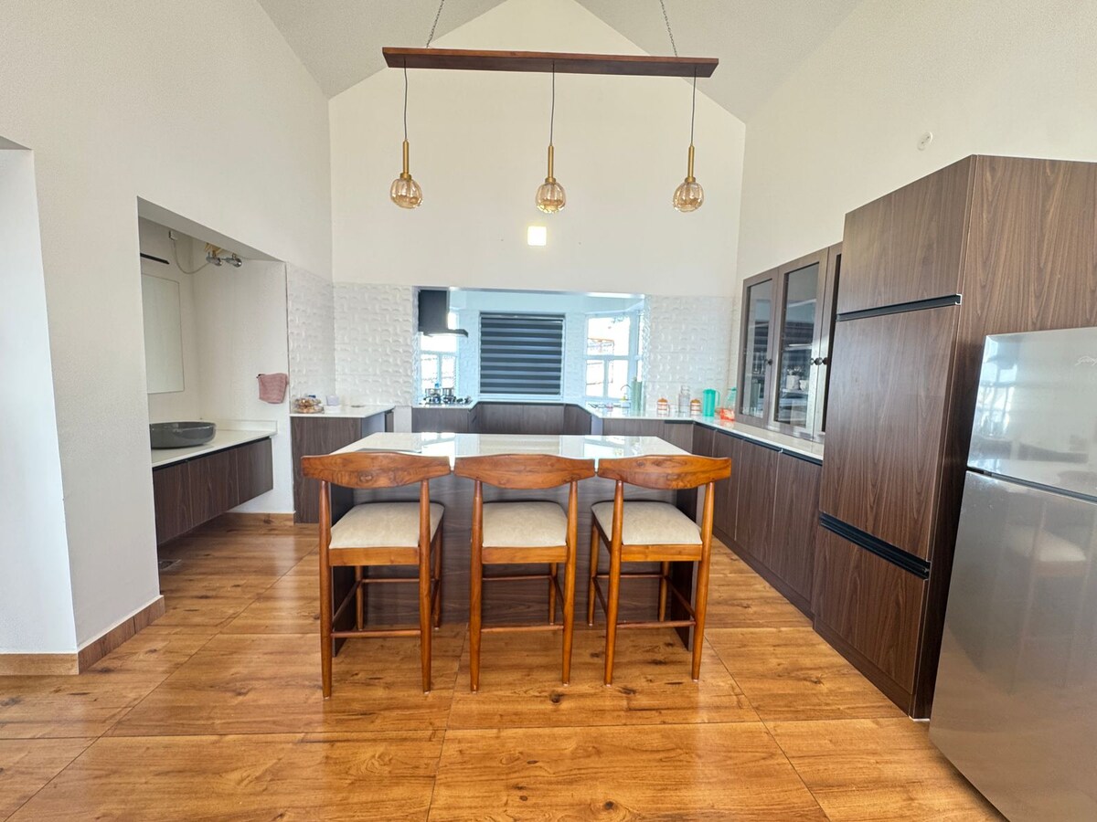Velkommen til Hillside Bliss Home fra Tisyastays, en stilig villa med tre soverom og kjøkken som ligger i de rolige åsene i Coonoor i Nilgiris. Dette moderne tilfluktsstedet er designet i en slående oransje og hvit palett og har utsikt over frodige teplantasjer, tåkete åser og svingete fjellveier. Våkn opp til frisk fjelluft, fantastisk utsikt og den beroligende sjarmen til Tamil Nadus høyland, perfekt for en fredelig og naturskjønn utflukt.