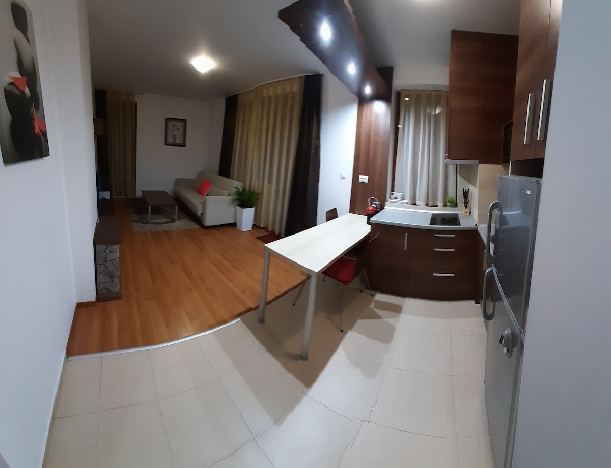 Helt ny, veldig lys, romslig og fullt møblert leilighet i moderne bygning, som ligger i nærheten av den fantastiske parken i Sandanski. Området er rolig og perfekt for en fin ferie, egnet for barn. Leiligheten er utstyrt med alt du trenger (komplett kjøkkenutstyr, kaffetrakter, klimaanlegg i begge rommene, vaskemaskin, strykejern, hårføner, støvsuger osv.) Se profilen min for guiden vi har laget. Vi vil gjerne være vertskap for deg! Kaffen er på huset! :)