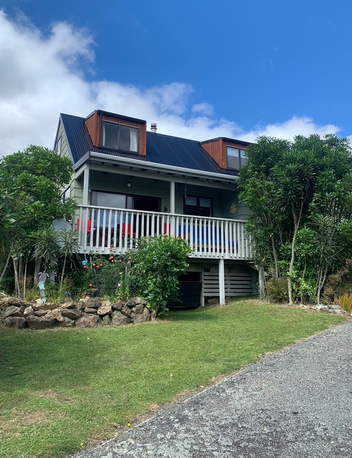 Dette er et moderne, koselig hjem med åpen planløsning og eksepsjonell flyt innendørs/utendørs for å nyte det vakre Marlborough-været. Det er et flott sted for én eller to foreldre i hovedrommet og ett eller to barn i enkeltrommet. Det er også veldig egnet for to par med to bad og to soverom, begge med TV. Det er et lite supermarked innen fem minutters gange, bar og restaurant innen to minutters gange, eller sentrum ligger 10–15 minutters gange unna. Det er veldig praktisk for alle fasiliteter.