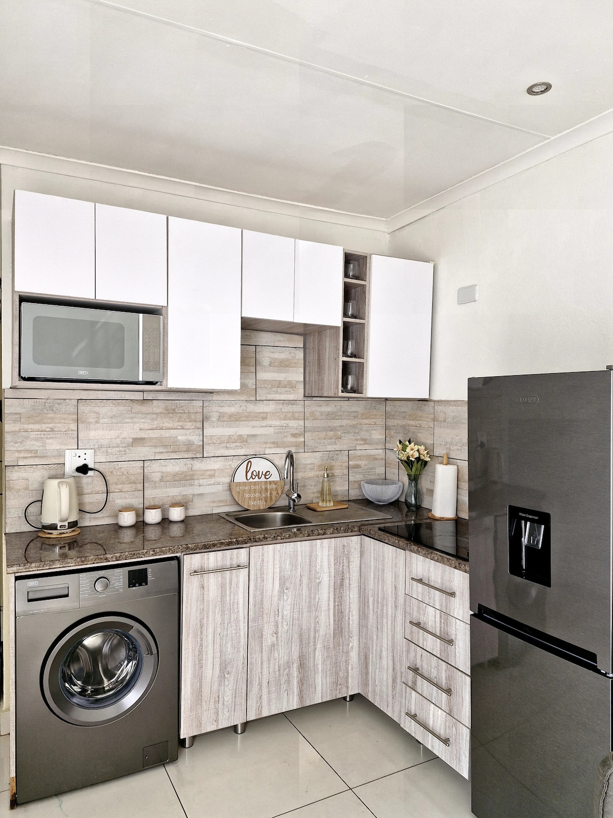 Rommet vårt har alt du trenger, solenergi, luksuriøst sengetøy med DSTV, Netflix, klimaanlegg, mikrobølgeovn og kjøleskap (inkludert servise). Det er et romslig rom hvor du kan slappe av, og det er perfekt for forretningsreisende, hvor de har et vennlig arbeidsområde for bærbare datamaskiner. Vi har også en sikkerhetsvakt som patruljerer lokalene våre.