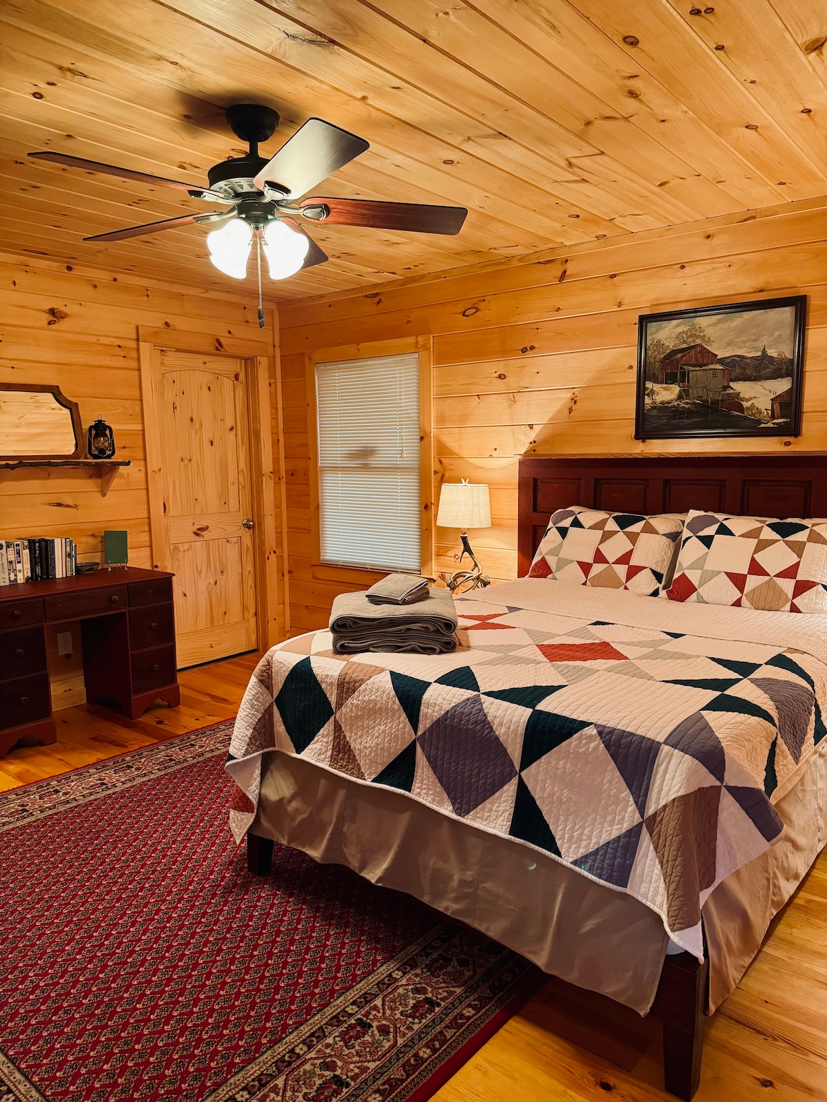 Slapp av med stil i denne moderne hytta mellom Helen og Dahlonega. I nærheten av vingårder, fotturer, fisking og shopping. Nyt over en hektar privatliv, en romslig terrasse og eksklusive møbler. Perfekt for to par eller en familie, med to soverom med kingsize-senger, eget bad, TV og store vinduer. Ekstra lange køyesenger gir komfortabel plass til voksne eller tenåringer. Asfaltert vei og innkjørsel gir enkel tilgang. Den perfekte ferien i Nord-Georgia! STR-23-0073 Bedriftslisens 4767