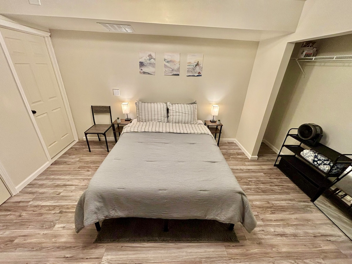 Hele leiligheten, kun for deg! Romslig rom, tekjøkken og bad med grunnleggende toalettartikler. Soverommet har en queensize-seng, skrivebord og en 60 tommers 4K-TV. Kjøkkenkroken har kjøleskap, kaffetrakter, mikrobølgeovn og gratis snacks. Dette er det perfekte stedet for arbeid og/eller avslapning. Vaskemaskin og tørketrommel er ikke en del av utleiestedet, men jeg vil gi tilgang til dem på forespørsel. Jeg tilbyr også tilgang til Netflix, Disney og Hulu på forespørsel. Alle apparater er nye og klare til bruk!