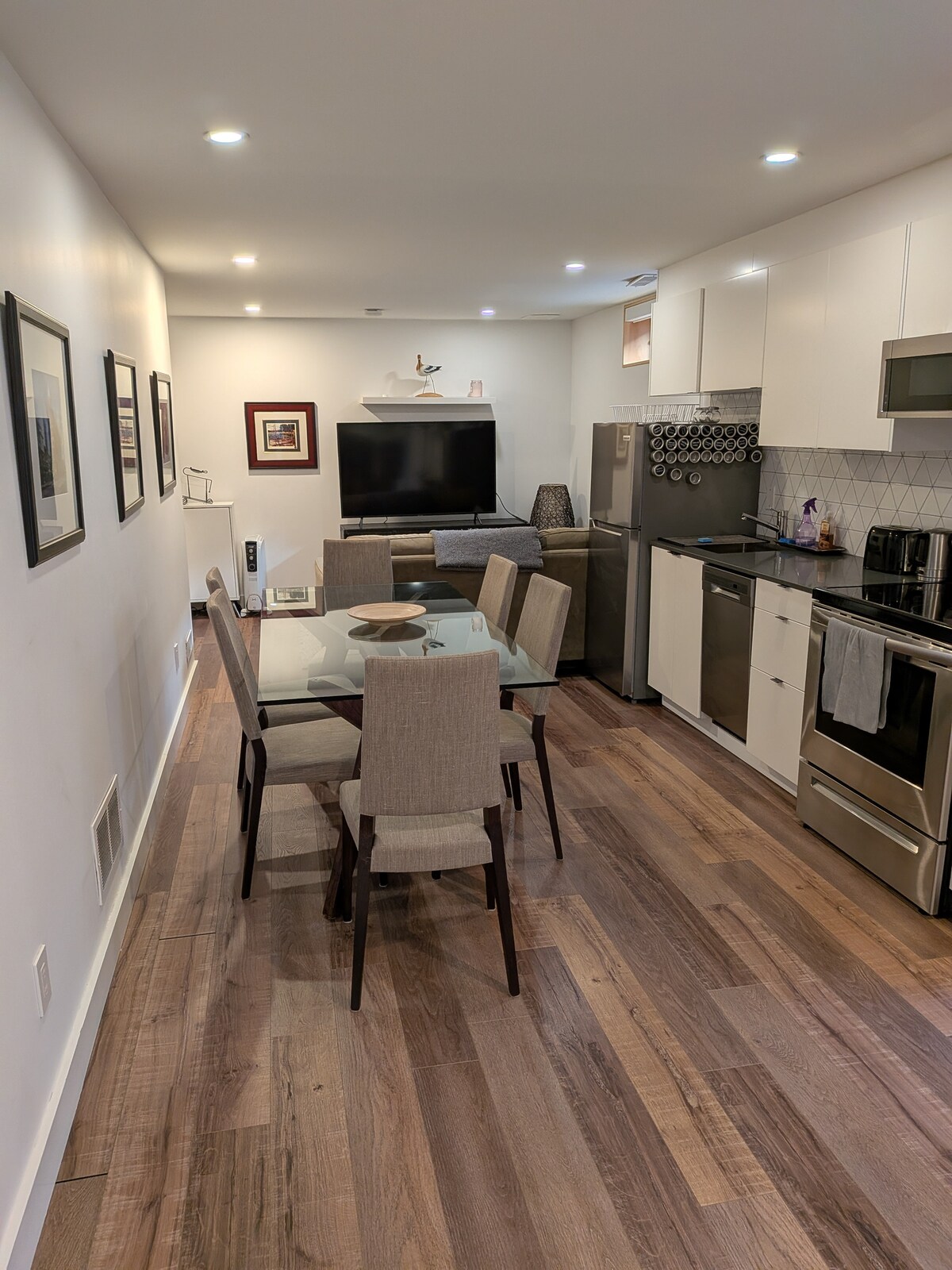 Kick back and relax in this stylish 2-bedroom home in trendy Bloor West Village. Enjoy a cozy living area with large TV (log into Netflix) and high-speed WiFi for work or streaming. Cook with ease in the fully equipped kitchen, then enjoy your meal at the dining table. You'll find two well designed bedrooms - each with a comfortable queen bed, and the suite includes a full bathroom with a stand-up shower. Just steps from Bloor Street’s shops and cafés—and an easy walk to beautiful High Park!