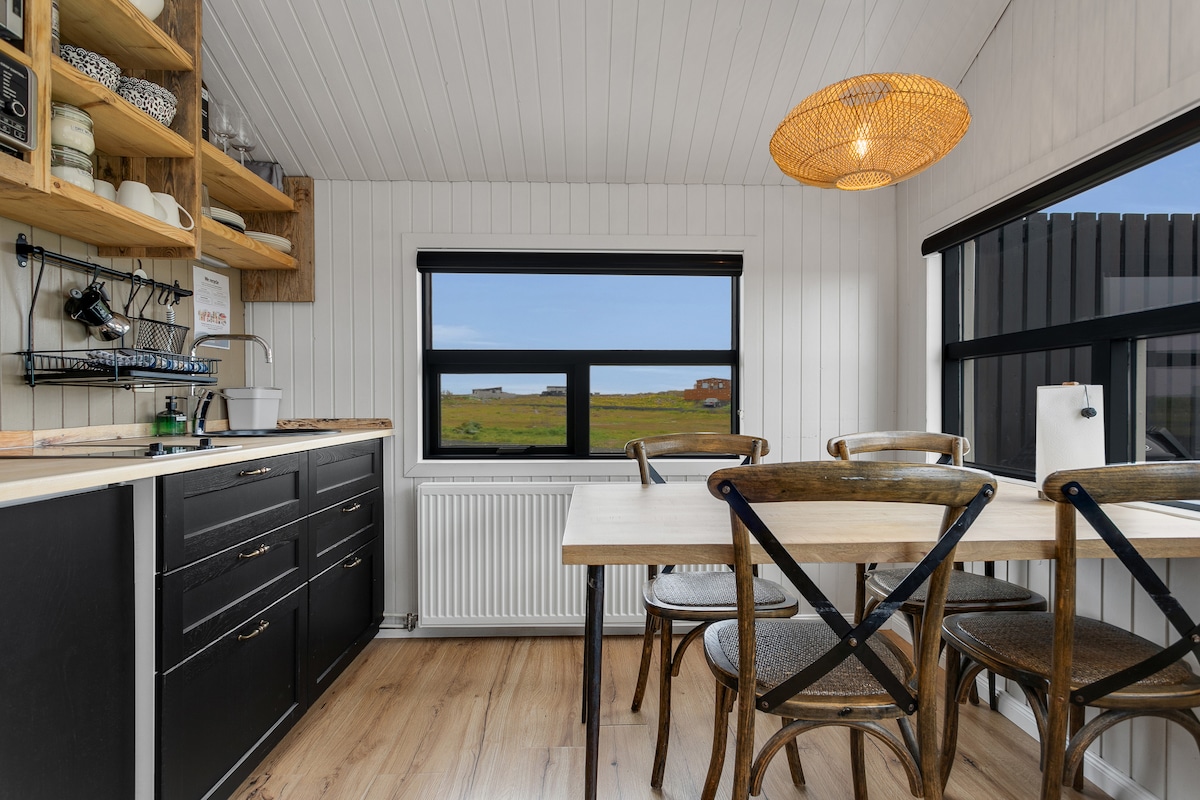 Hyttene ligger i et avsidesliggende område 15 minutter fra Keflavik internasjonale lufthavn. Omgivelsene ligger ved Atlanterhavskysten, slik at du kan forvente en nærende bris. Alle hytter har privat boblebad. Hytter passer deg godt hvis du vil lene deg tilbake og slappe av i naturen. Det er ingen lysforurensning rundt hyttene, så det er et flott sted å se Aurora borealis.