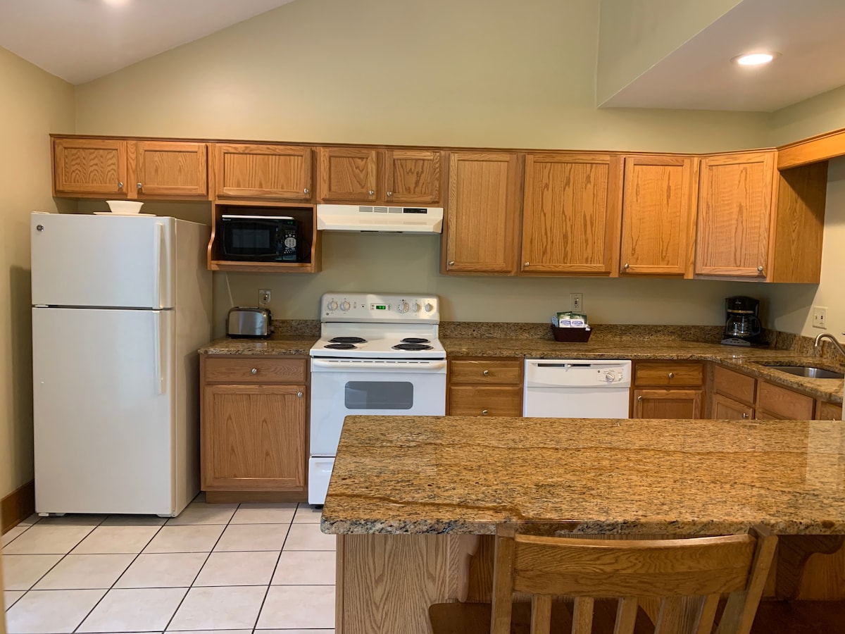 Ski, golf, tur, svømming og mye mer. To minutter med bil til bakkene. Denne leiligheten med to soverom, to queensize-senger og 1,5 bad ble 100 % renovert med alt nytt i 2021. Kom i helgen eller kom i en måned. Jack Frost Resort er så fredelig med dyreliv, naturlig skjønnhet og ligger innen 20 minutter fra flere andre byer. Bare noen få miles fra Lake Harmony og Boulder Lake med kajakkpadling, svømming, padlebrett osv. Jeg kan bare ikke få nok av det området hadde å tilby.
