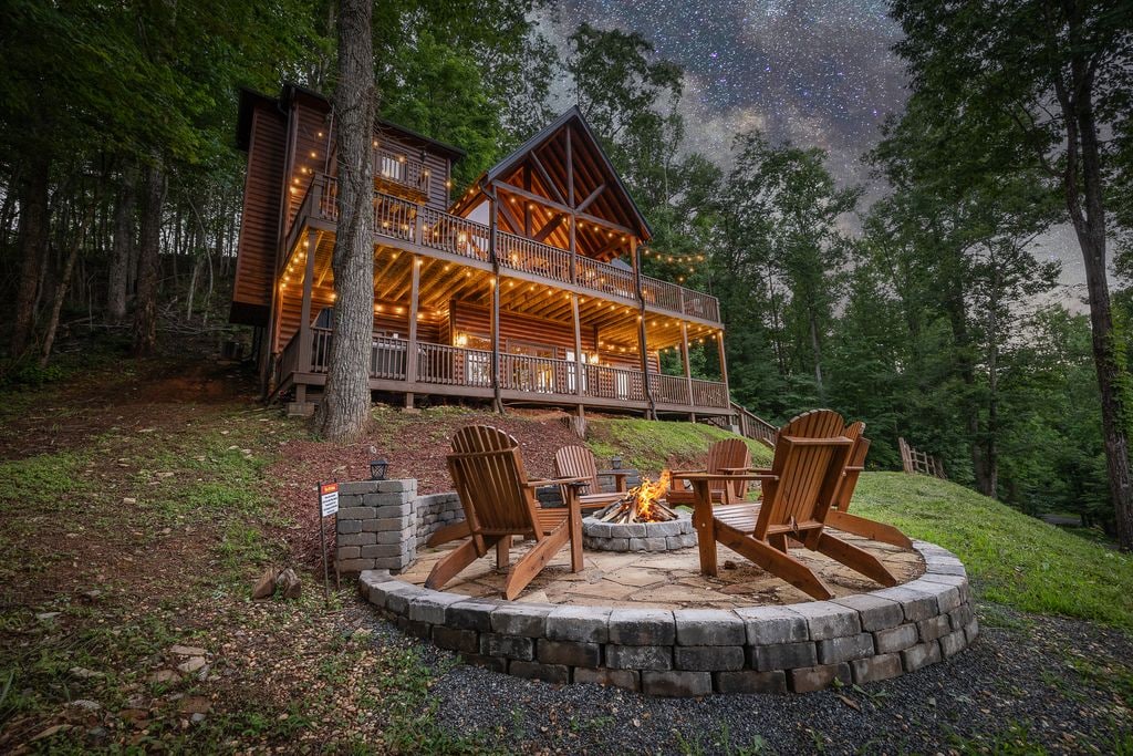 Oppholdet ditt på Chasing Fireflies blir en uforglemmelig opplevelse! Denne sjarmerende hytta er en perfekt blanding av moderne og rustikk. Det er vanskelig å finne et sted i denne hytta uten fantastisk utsikt! 3 MILES TIL SENTRUM BLUE RIDGE TO KINGSIZE-SUITER MED UTROLIG UTSIKT. 2 1/2 LUKSURIØSE BADEROM. INNENDØRS GASSPEIS FULLT UTSTYRT KJØKKEN TO UNDERHOLDNINGSDÆKK MED STEINPEISER, SPISEOMRÅDE, VÅTBAR, HUSKE, BORDTENNIS OG UTSIKT UT AV DENNE VERDEN BOBLEBAD RASKT INTERNETT PARKERING FOR TRE KJØRETØY.