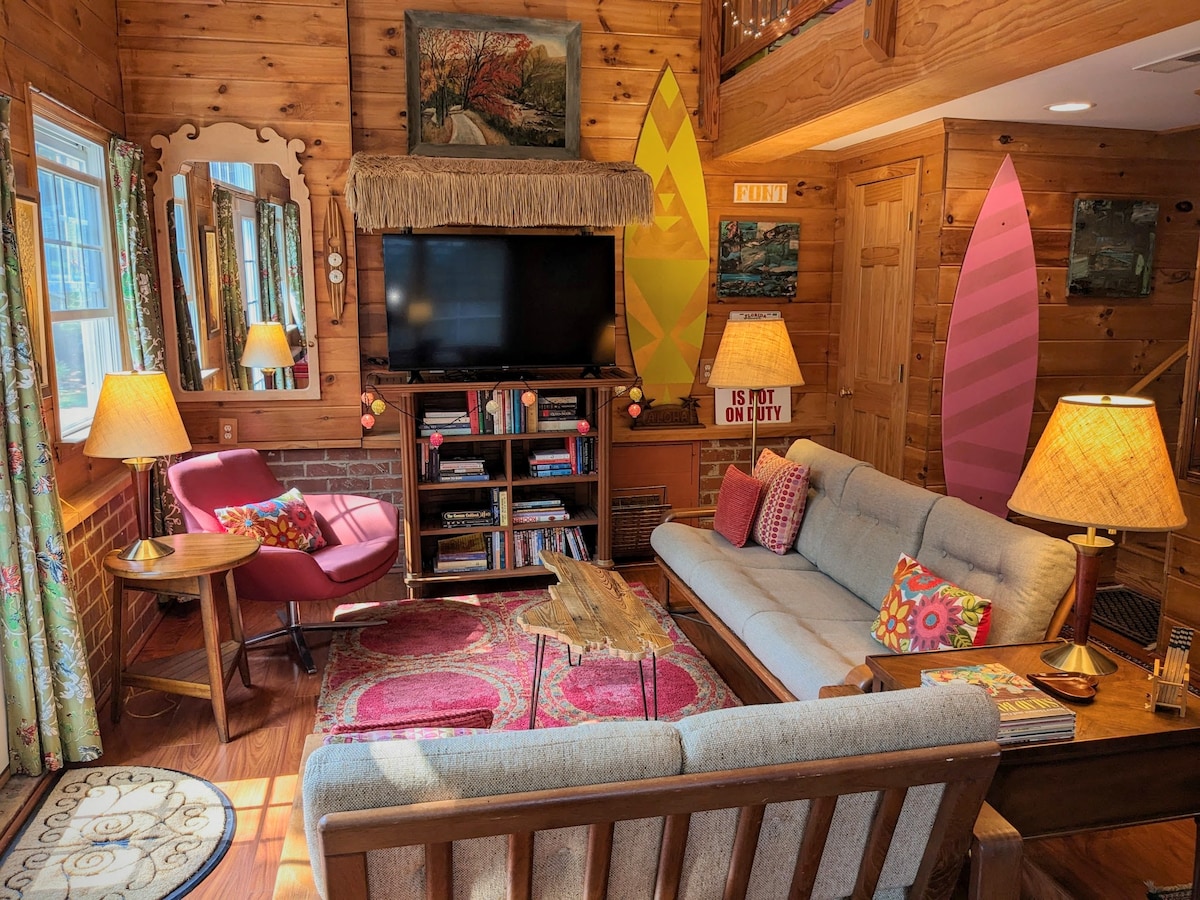 Våkn opp til fantastiske soloppganger i fjellet – rett fra sengen. På What a View sier gjestene konsekvent at bildene ikke gjør det rettferdig, og vi kunne ikke vært mer enige. Dette koselige, vakkert innredede studioet ligger på en naturskjønn ås over Gatlinburg og tilbyr vidstrakt utsikt over Smoky Mountain som endrer seg med lyset fra soloppgang til solnedgang. Stille, avslappende og bare minutter fra handlingen, dette er det perfekte stedet å koble fra mens du holder deg nær alt.