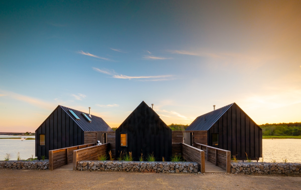 Den unike hytten er designet og bygget av arkitekt Peter Braithwaite, og tilbyr en eksklusiv og rolig ferie. Denne åpne, fullt utstyrte hytta har plass til opptil seks gjester og er ideell for par, små familier eller friluftsentusiaster når som helst på året. Airbnb-en ligger 20 minutter utenfor Halifax på seks hektar med en utendørs peis, grill og fantastisk utsikt over Back Bay.