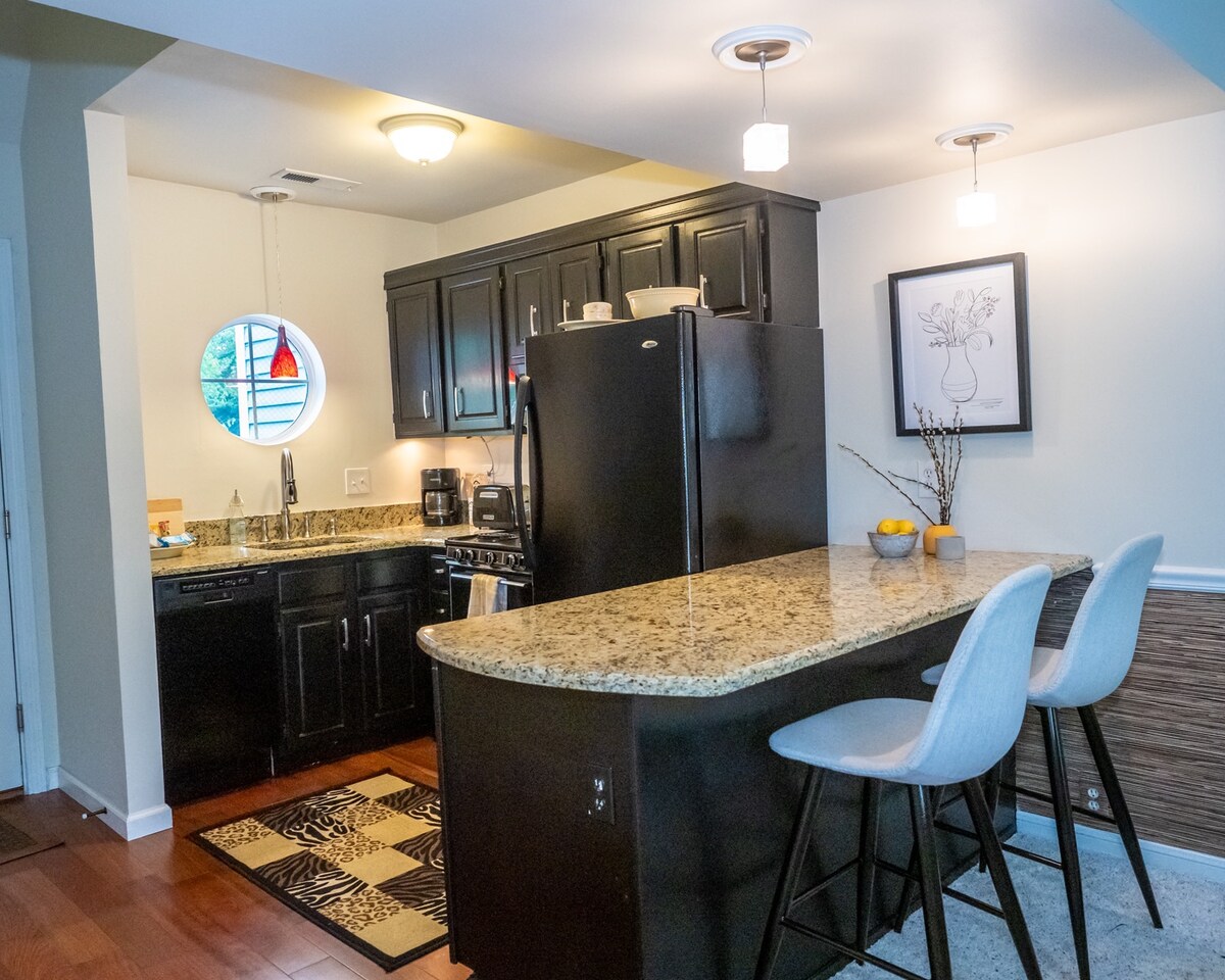 Ren, romslig suite i et boligområde med plass til åtte personer. Sentralt plassert. En barnevennlig beliggenhet med enkel tilgang fra I-95. Privat inngang, kjøkken, parkering utenfor gaten, uteplass med grill, vaskemaskin/tørketrommel og oppvaskmaskin. Kort kjøretur til lokale historiske og turiststeder som CT vinstier, Clydes eplesider, Mystic sentrum – akvariet, havnen og landsbyen. Nautilus Museum, Ivryton og Godspeed Opera houses og Garde Arts Center. Dekorert for ferien.