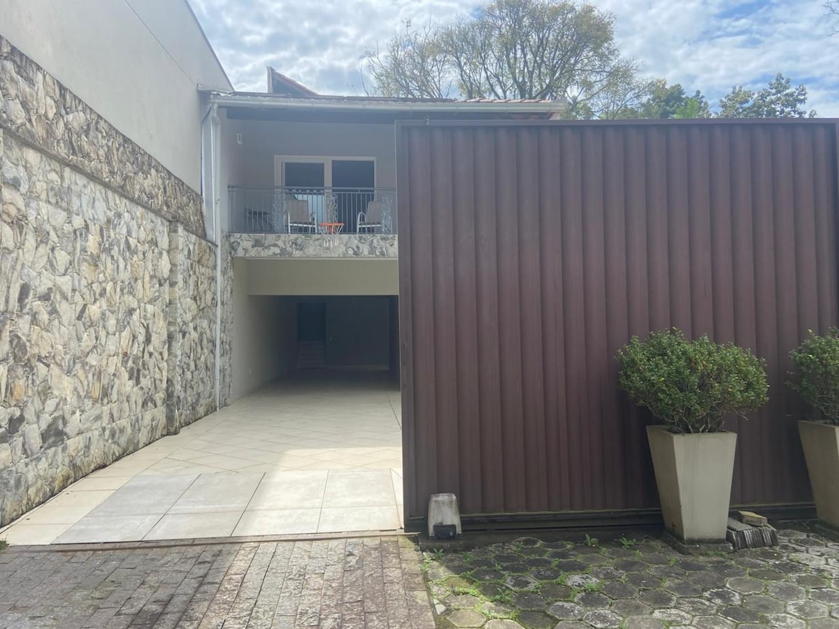 Romslig og helt privat suite med egen inngang via garasjen og eksklusiv adkomst via en utvendig trapp. Gjesten beveger seg ikke rundt i huset vårt, noe som sikrer fullstendig privatliv. Suiten har dobbeltseng, klimaanlegg, kjøleskap, privat bad og en luftig balkong. Ideelt for bedriftsledere, par eller de som søker ro. Strategisk beliggenhet: Fem minutters kjøring fra Vila Germânica. 10 minutter fra Blumenaus sentrum. 40 minutter fra Pomerode. 40 minutter fra Indaial.