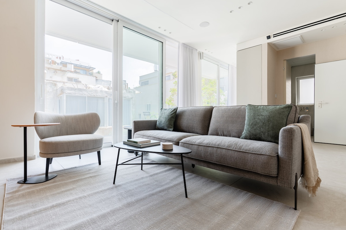 ⸻ Stilig hagesuite med et friskt, moderne design i et av Tel Avivs sikreste og mest ettertraktede områder. Nyt ultrarask fiber-Wi-Fi, kraftig ny AC, fullt utstyrt kjøkken med Nespresso, nytt bad og helt nye møbler. Vaskemaskin og tørketrommel i hagen. Gå ut til en privat hage med sitteplasser. Gratis gateparkering er vanligvis tilgjengelig. Et delt tilfluktsrom ligger bare fem meter unna. Det perfekte rolige og avslappende oppholdet i Tel Aviv.