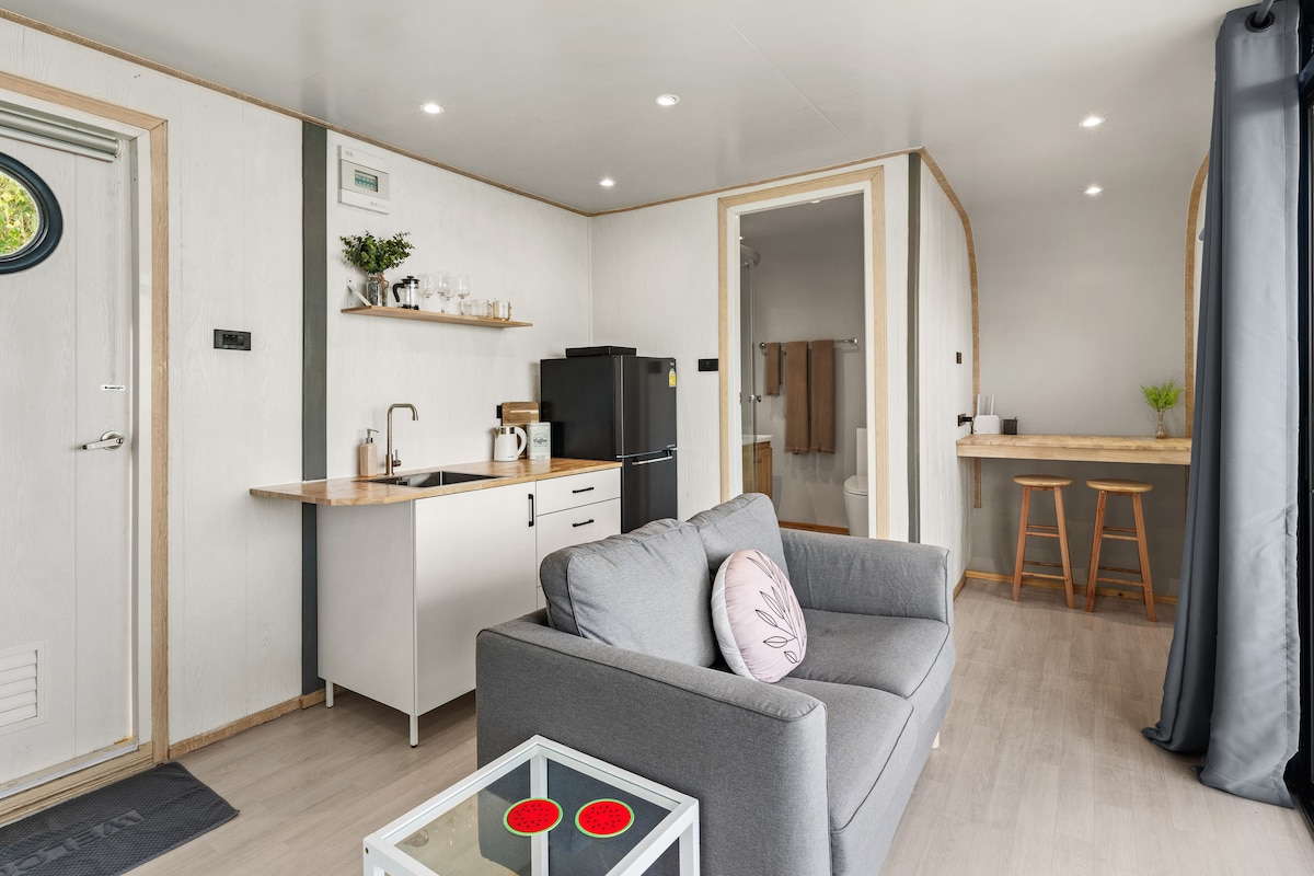 🏠 Det lille huset ligger i Boon Heritage House Guesthouse. Rommet er dekorert med naturlige materialer og varme toner. Det har et toalett, klimaanlegg, et privat bad, komfortabelt sengetøy, en TV, et kjøleskap og andre nødvendigheter for et avslappende opphold. Selv om dette rommet ikke har direkte havutsikt, kan gjestene fortsatt nyte uteområdene med utsikt over solnedgangen. Vær oppmerksom på at huset ligger langs en hovedvei, så noe trafikkstøy fra forbipasserende kjøretøy kan høres.