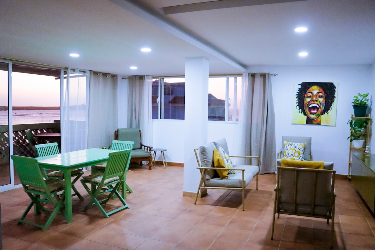 Drømmeleilighet ved Estoril-stranden – Boavista, Kapp Verde Våkn opp til lyden av havet og fantastisk havutsikt i denne sjarmerende duplexleiligheten, som ligger rett foran den vakre Estoril-stranden – bare fem minutters gange fra hjertet av Sal Rei. Nyt en romslig privat terrasse med fantastisk utsikt, perfekt for å slappe av eller spise under stjernene. Et fredelig og solrikt tilfluktssted i Kapp Verde – hvor komfort møter paradis.
