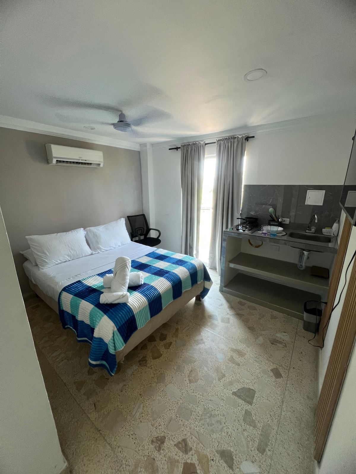 Privat dobbeltstudio med klimaanlegg, TV, wifi, | 8 min fra flyplassen