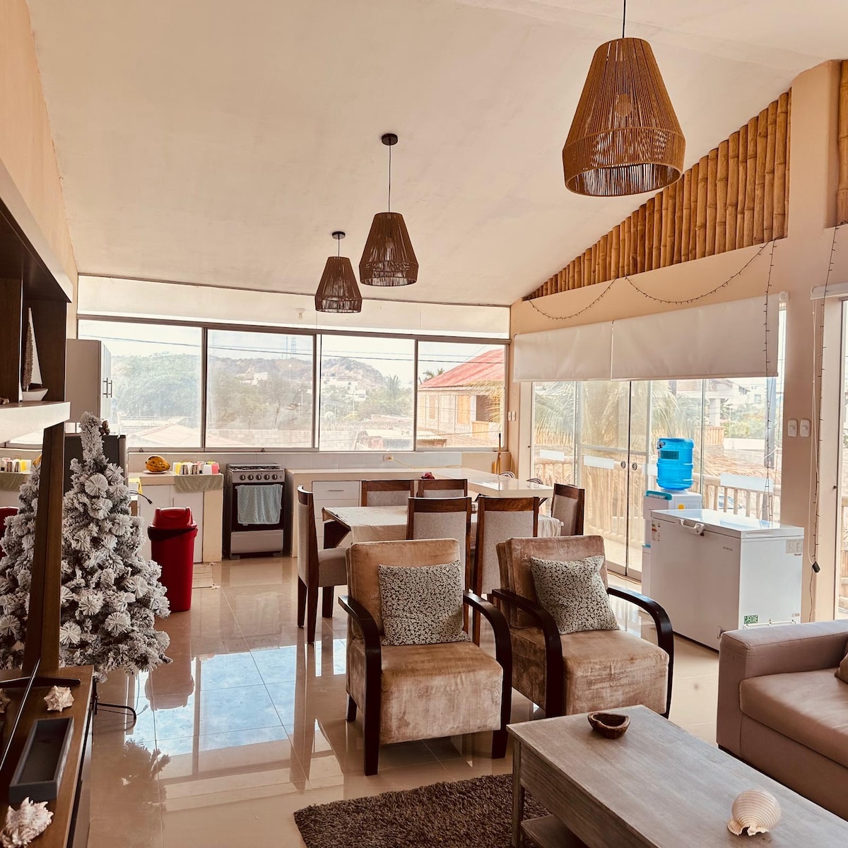 ¡Tu refugio costero te espera! Despierta con tu familia y amigos, cada mañana con el sonido de las olas y vistas impresionantes. Este es tu lugar, la pascana soñada donde el sol acaricia tu piel y la playa invita a la calma. En temporada, la emoción es doble: podrás avistar ballenas y tortugas muy cerca de nuestro bonito espacio. Disfruta de la tranquilidad y la belleza de la costa peruana, un verdadero escape para conectar con la naturaleza. Tu lugar de descanso te llama.