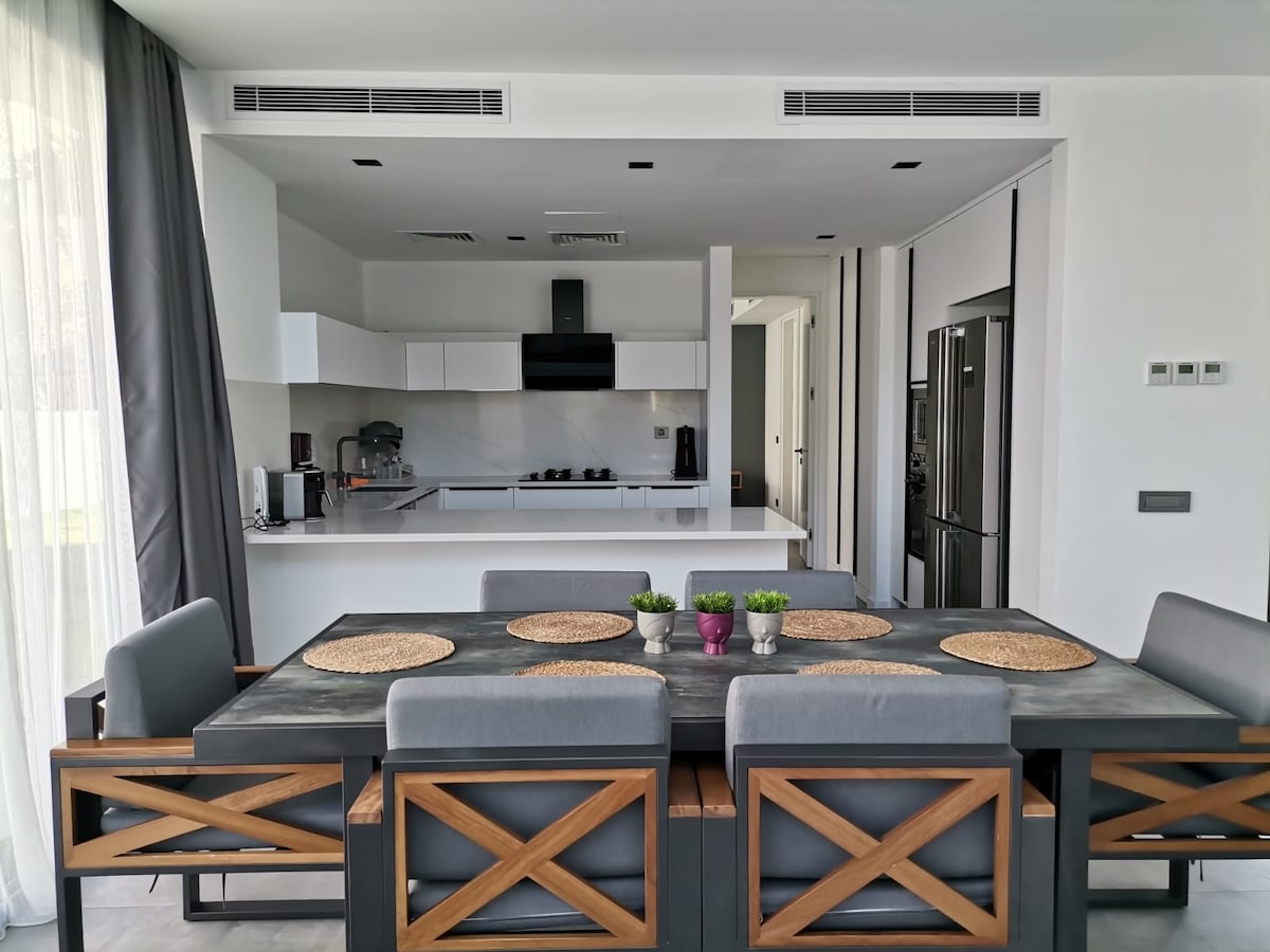 En overdådig designet villa med tre soverom med eget bad, som ligger i det prestisjetunge femstjerners havområdet Le Chic Residences Bodrum, og som tilbyr fantastisk havutsikt og en eksepsjonell luksusopplevelse. Dette er en privateid bolig som ligger i et prestisjefylt hotell- og boligkonsept. Hotellet er åpent fra midten av mai til slutten av oktober. I hotellets driftssesong har gjestene fullstendig tilgang til alle hotellets fasiliteter.