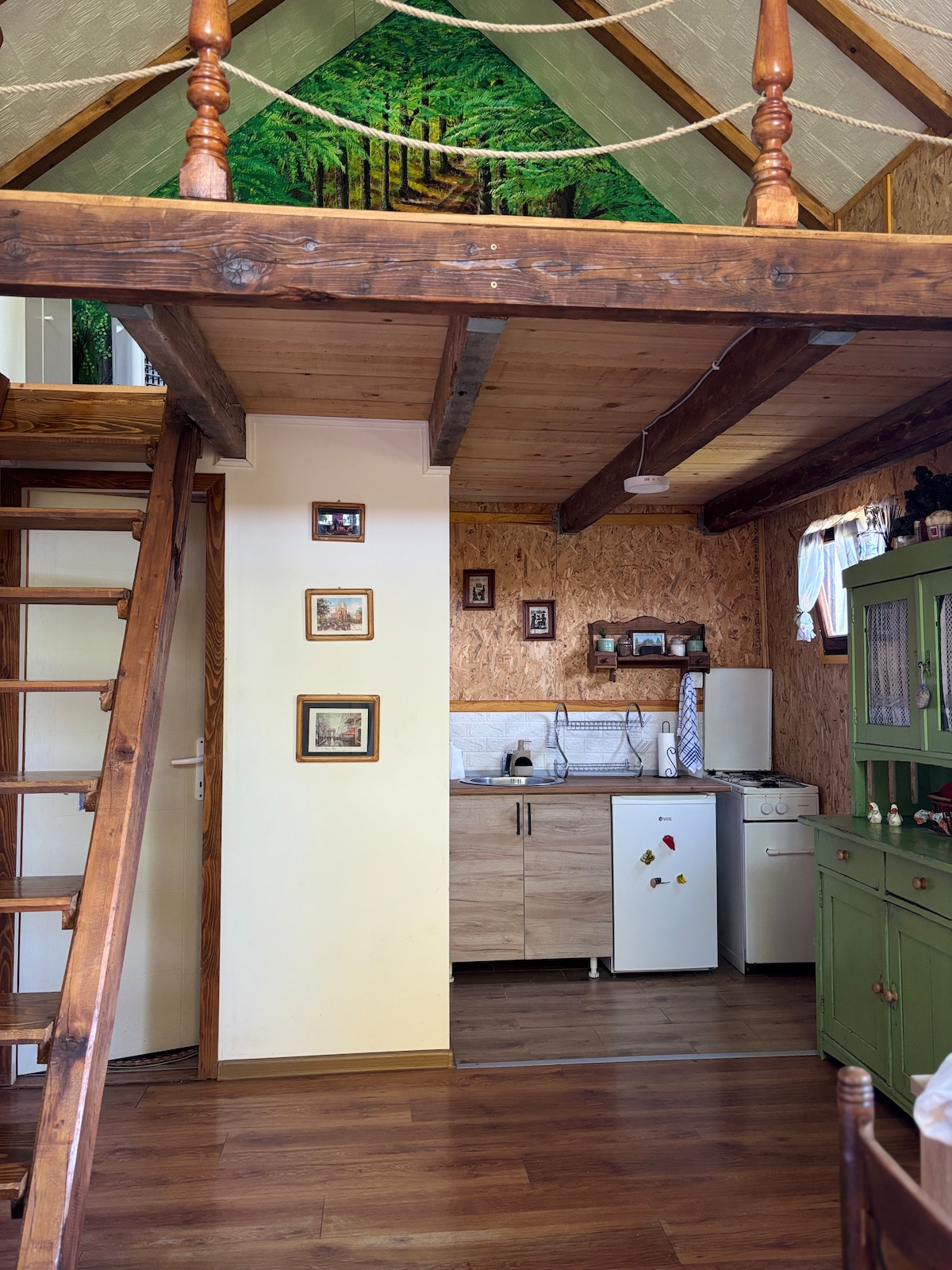 Flykt inn i en organisk oase i utkanten av skogen i den eldste nasjonalparken i Serbia. Detox og lad opp kroppen din med badstue i vakker natur i denne håndlagde hytta laget med kjærlighet og helt naturlige og resirkulerte materialer. Det er fritt for elektrisk stråling (ingen elektrisitet), men har alle bekvemmeligheter man kan trenge: komfyr, stekeovn, varm dusj med gass, strømbanker, LED-lys for natt, leselamper … Peis for varme og hygge på dagtid og natt, badstue for detox og avslapning.